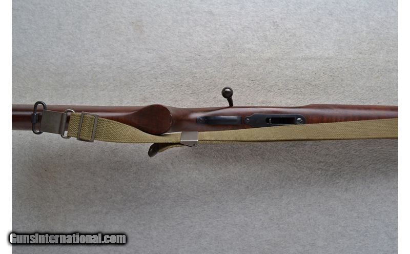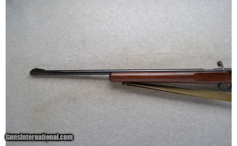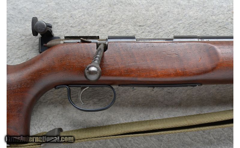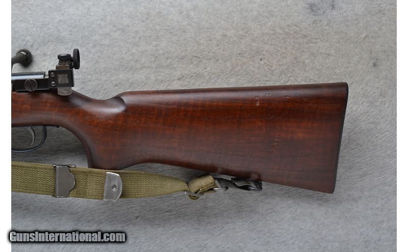 Description: This Remington Model 513-T Matchmaster is a right hand bolt action target rifle in .22 Long Rifle Cal. It has a 27 inch heavy target barrel. A blade front sight and a Redfield adjustable peep rear sight. The butt stock is a smooth grip walnut pistol grip. The forearm is a smooth grip walnut. It comes with a cloth sling. The barrel is stamped U.S. Property and Military Finish. .22 Long Rifle SOLD Chambers: Detachable magazine. Metal Condition: Good. Some handling/use marks. Wood Condition: Good. Handling/use marks. Bore Condition: Excellent. Barrels: 27 inch heavy target. Triggers: Grooved. Stock Dimensions: LOP 13.5 inches. Fore End: Smooth grip walnut. Butt Pad: Checkered steel plate. Weight: 8 lb. 14 oz. Sights: Raised blade front. Redfield adjustable peep rear. Item Location: Richfield, WI |