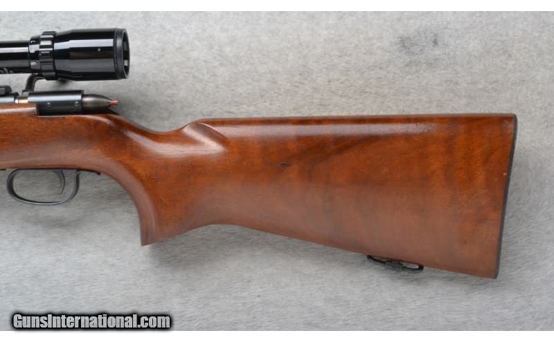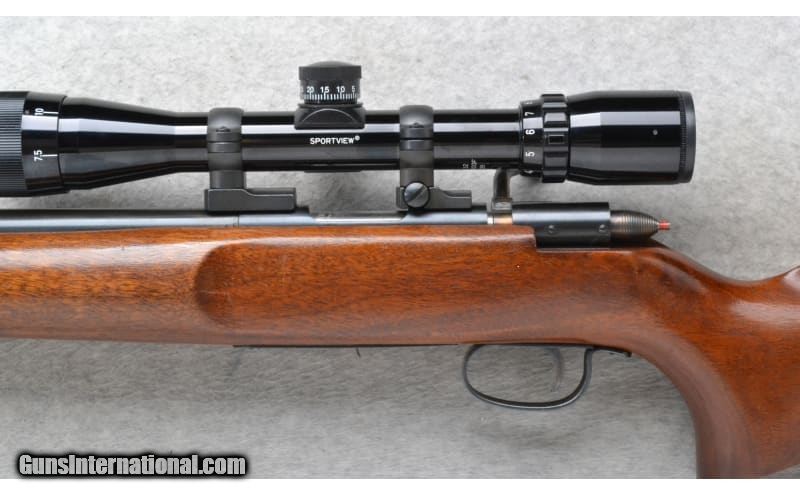 Description: This Remington Model 513-T Matchmaster is a right hand bolt action rifle in .22 Long Rifle Cal. It has a 27 inch target barrel. It is outfitted with a Sportview 3-9x32 Scope. No iron sights. The butt stock is a smooth grip hardwood pistol grip. The forearm is a smooth grip hardwood with a bottom accessory rail. It has a loaded chamber indicator. .22 Long Rifle SOLD Chambers: 5 round detachable magazine. Metal Condition: Excellent. A few minor handling marks. Wood Condition: Very Good. Has some light handling marks. Bore Condition: Excellent. Barrels: 27 inch target barrel. Stock Dimensions: LOP 13 5/8 inches. Fore End: Smooth grip hardwood with a bottom accessory rail. Butt Pad: Checkered steel plate. Weight: 9 lb. 6 oz. Sights: Sportview 3-9x32 Scope. Item Location: Richfield, WI |