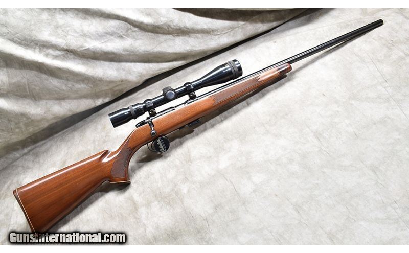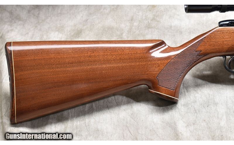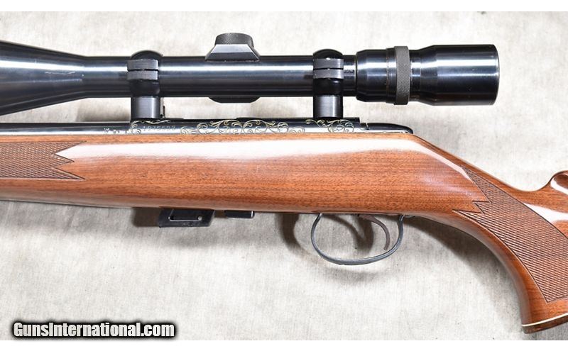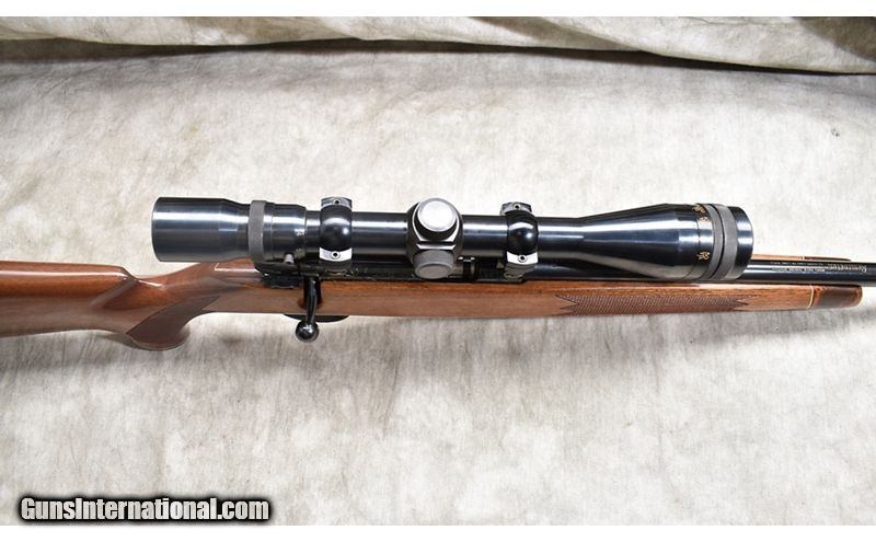 Description: Remington's flagship .22 rifle featuring high grade walnut stock with rosewood tip/grip and butt caps. Receiver and trigger guard are sparsely engraved with an Acanthus/ivy motif. .22 Long Rifle SOLD Chambers: 5 Metal Condition: Excellent. Wood Condition: Excellent. Bore Condition: Shiny and bright. Barrels: 24-inch Triggers: Factory trigger. Stock Dimensions: 13-1/2 inch LOP. Butt Pad: Rosewood plate. Weight: 7 lb - 5 oz Sights: Drilled and tapped for open sights or scope. Outfitted with a 3-9x scope. Item Location: Rogers |