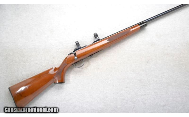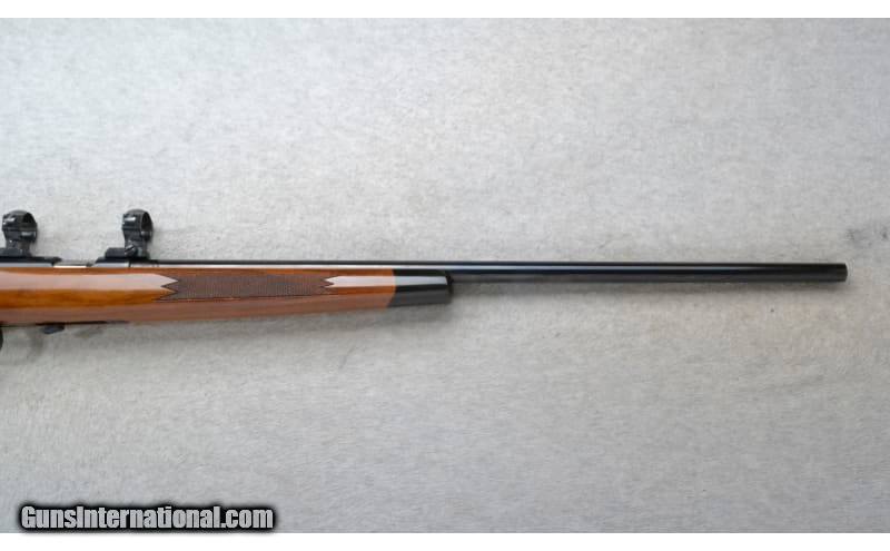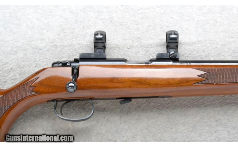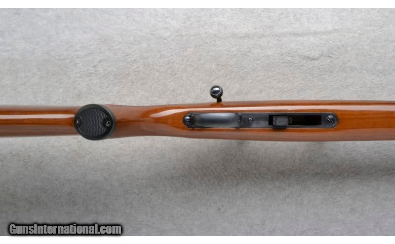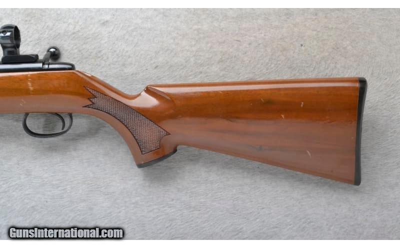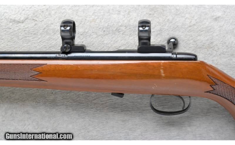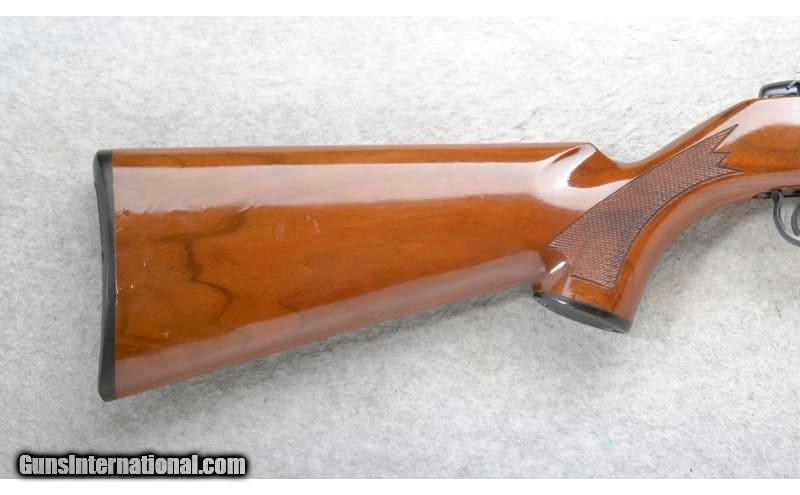 Description: This Remington Model 541-T is a right hand bolt action rifle in .22 Long Rifle Cal. It has a 24 inch barrel. It has scope rings attached. No iron sights. The butt stock is a checkered grip hardwood pistol grip with a black cap. The forearm is a checkered grip hardwood with a black tip. .22 Long Rifle SOLD Chambers: Detachable Magazine. Metal Condition: Excellent. Wood Condition: Fair. Has some handling marks. Fine crack in the buttstock. Appears to have been refinished poorly with drip marks. Bore Condition: Excellent. Barrels: 24 inch. Stock Dimensions: LOP 13 1/4 inches. Fore End: Checkered grip hardwood with a black tip. Butt Pad: Checkered black plate. Weight: 6 Lb. 6 Oz. Sights: Scope rings attached. No iron sights. Item Location: Richfield, WI |