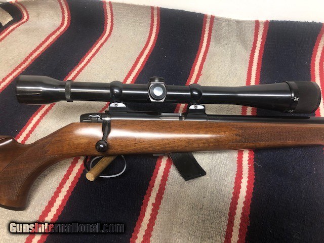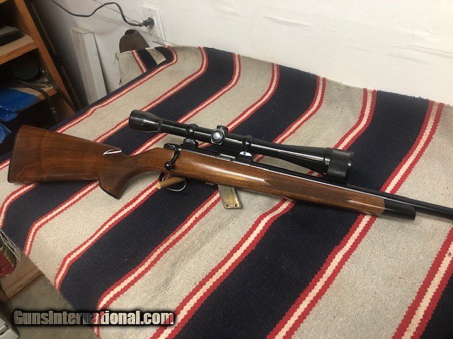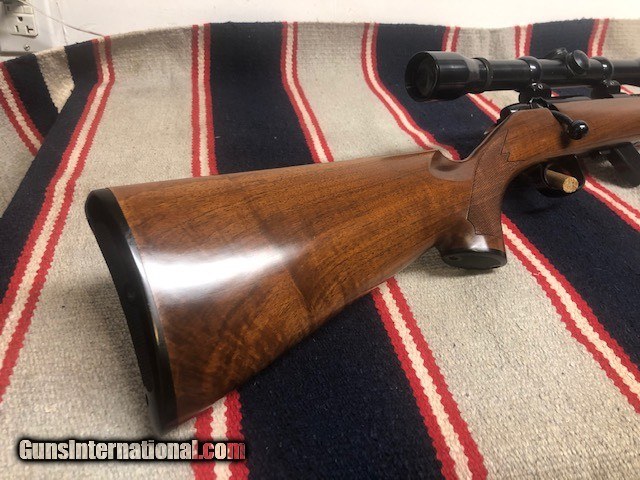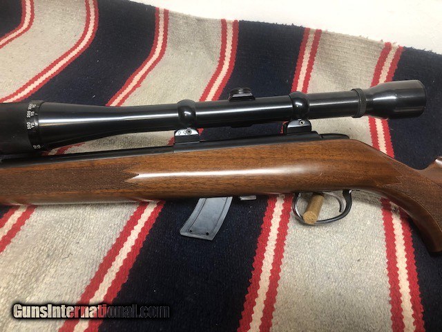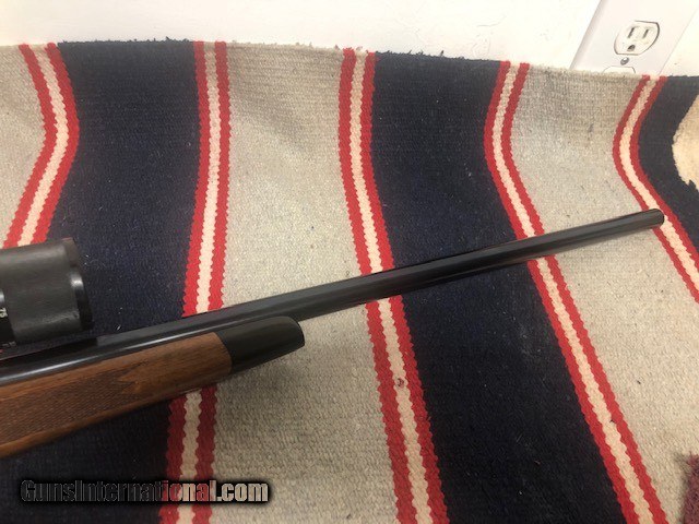 Description: Very nice Remington 541-T 22 sporter. Near new condition with metal at 98-99%. Wood I'd rate 95% due to a few abrasions on bottom behind forend cap(see pic). Rifle sports a vintage Weaver K10 scope in Conetrol rings. Deadly on targets or varmints. Comes with 10rd. magazine. SOLD |