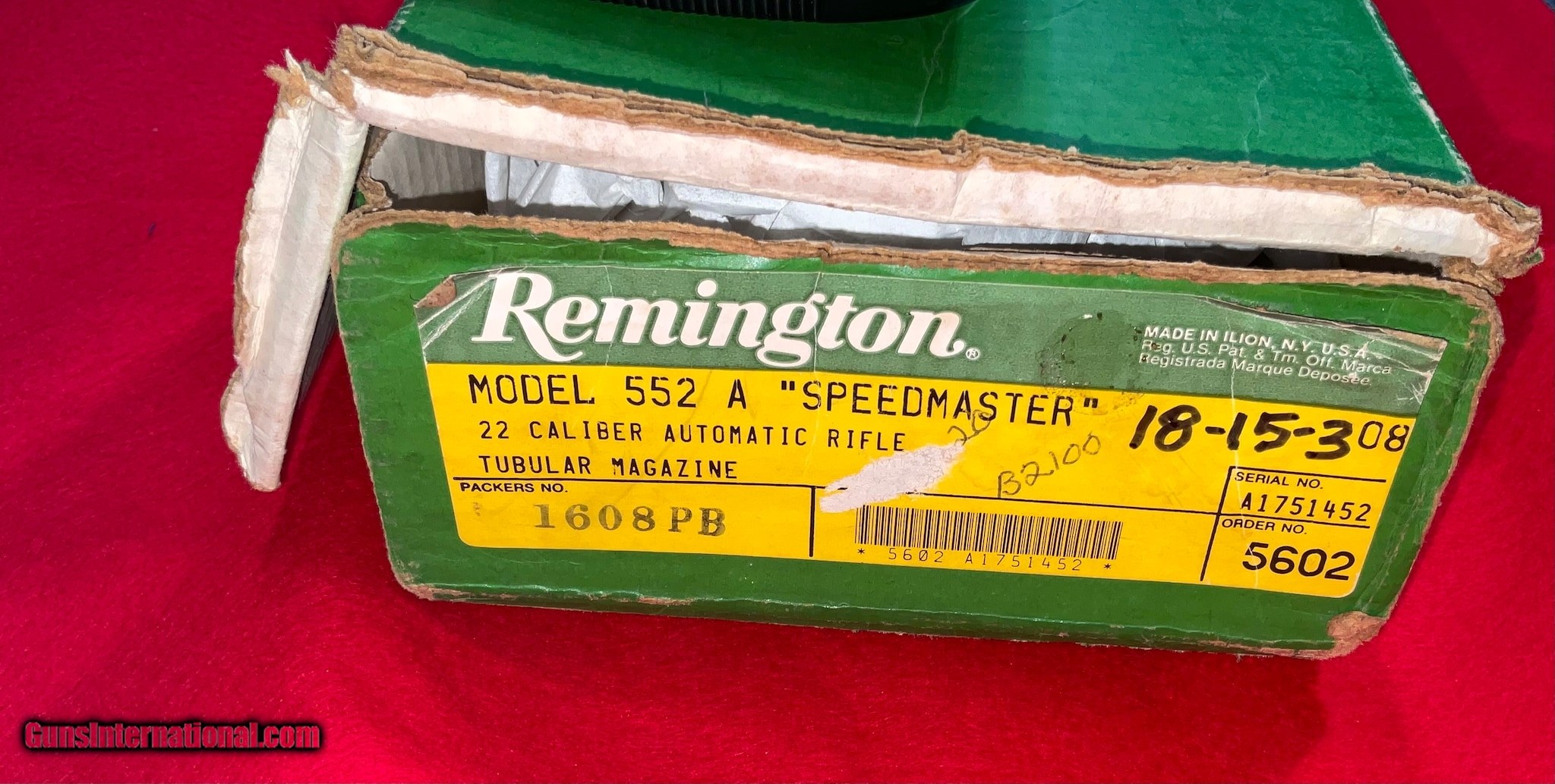 Description: Guns Listing ID: 919628 Very good used condition. Gun comes with box and all paperwork. Please note box is in fair condition. SOLD Manufacturer: REMINGTON Model: 552 SPEEDMASTER Caliber Info: .22 S/L/LR Condition: Used - Non-Certified Barrels: 21 BARREL Finish: BLUE |