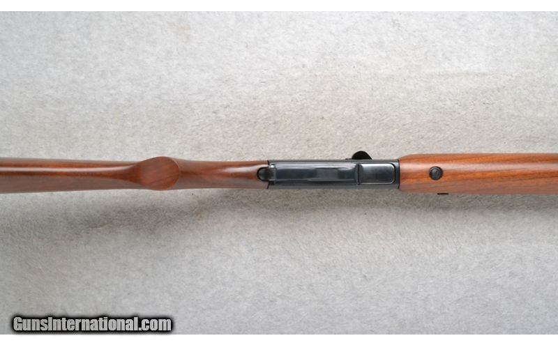 Description: This Remington Model 552 Speedmaster is a right hand semi-auto rifle in .22 Short, Long or Long Rifle Cal. It has a 23 inch barrel. A blade front sight and an adjustable notch middle sight. It is dovetailed. The butt stock is a smooth grip hardwood pistol grip. The forearm is a smooth grip hardwood. This gun has been refinished. Manufactured 1957. .22 Short/Long/Long Rifle SOLD Chambers: Tube Magazine. Metal Condition: Very Good. Has been reblued. Wood Condition: Excellent. Has been refinished. Bore Condition: Good. Barrels: 23 inch. Stock Dimensions: LOP 13 1/2 inches. Fore End: Smooth grip hardwood. Butt Pad: Remington checkered black plate. Weight: 5 Lb. 8 Oz. Sights: Blade front. Adjustable notch middle. Dovetailed. Item Location: Richfield, WI |