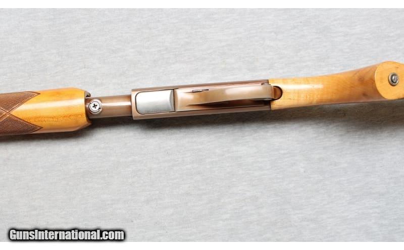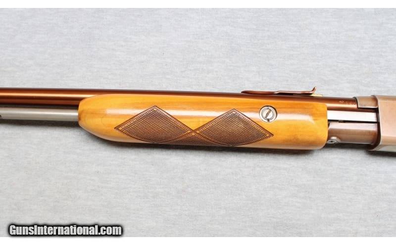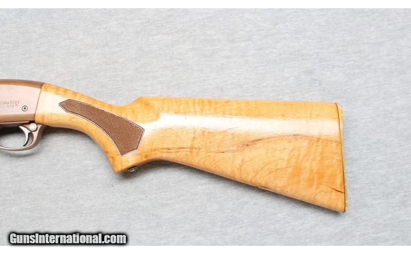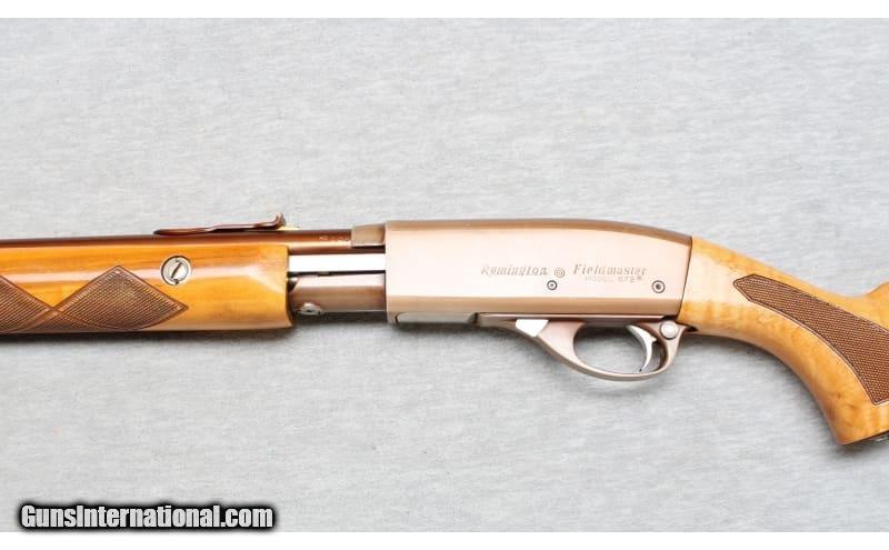 Description: Remington 572 Fieldmaster in .22 Long Rifle. The Model 572 BDL Fieldmaster is one of the most popular pump-action 22 rimfires made in America. It handles 22 short, 22 long and 22 long rifle cartridges interchangeably. Other features include big-game sights, a positive cross-bolt safety, and a grooved receiver for scope mounts. This rifle would be a good choice for the sportsman who still loves the look and feel of classic rimfire rifles. The rifle has been refinished with a copper finish barrel and a bronze/brown action. The blond furniture is in very good condition. The rifle weighs just over 4 lbs. .22 Long Rifle SOLD Metal Condition: Very Good Wood Condition: Very Good Bore Condition: Bright Barrels: 23 Inches Triggers: Factory Stock Dimensions: LOP 13 1/2 Inches Fore End: Checkered hardwood Butt Pad: Metal pad Sights: Adjustable notch rear sight Item Location: La Vista, NE |