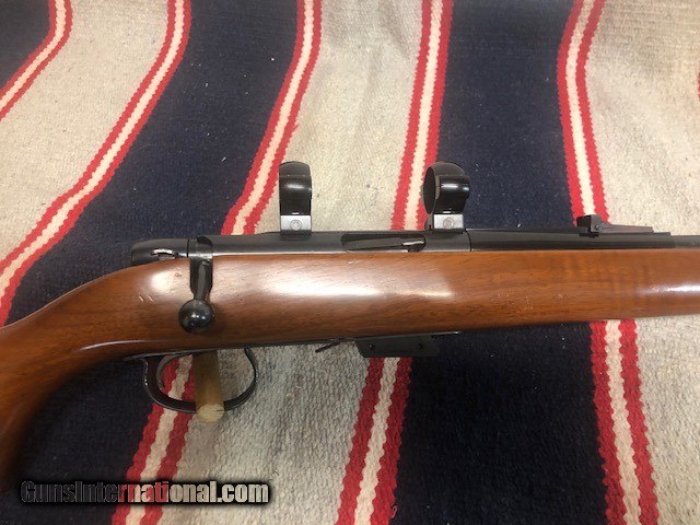 Description: Super nice 591-M 5mm. Gun shows very minimal uasge. Blueing as new 98-99%. Wood has a few very light handling marks and I would rate 95%+. Gun is all original with sights and magazine. Included are a set of Redfield rings and 2 boxes of Ammo. SOLD |