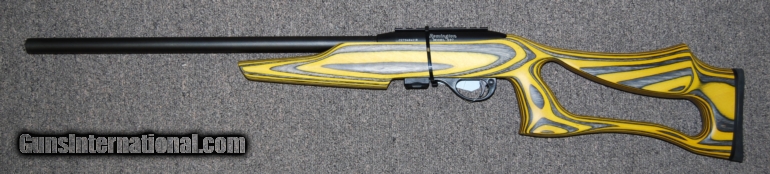Description: New Remington Model 597 Yellow Jacket Semi-Automatic Rimfire Rifle .22 Long Rifle 20" Barrel 10 Round magazine Yellow and Gray Laminated Thumbhole Stock Satin-Blued Metal Finish SOLD |