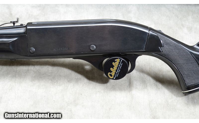 Description: Rare find. This one has been hardly used if used at all. Black synthetic stock with white accents. .22 Long Rifle SOLD Chambers: 14 Metal Condition: LNIB. Wood Condition: LNIB. Bore Condition: LNIB. Barrels: 19-1/2 inch. Triggers: Factory trigger. Stock Dimensions: 131-3/4 inch LOP Fore End: Full-length black Nylon with Schnabel. Butt Pad: Black plate. Weight: 4 lb - 2 oz Sights: Blade with white dot and notch open sights.Grooved for your choice of scope. Item Location: Rogers |