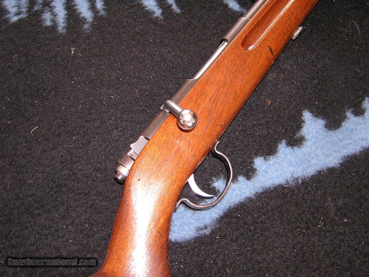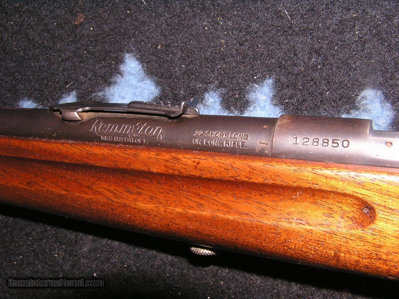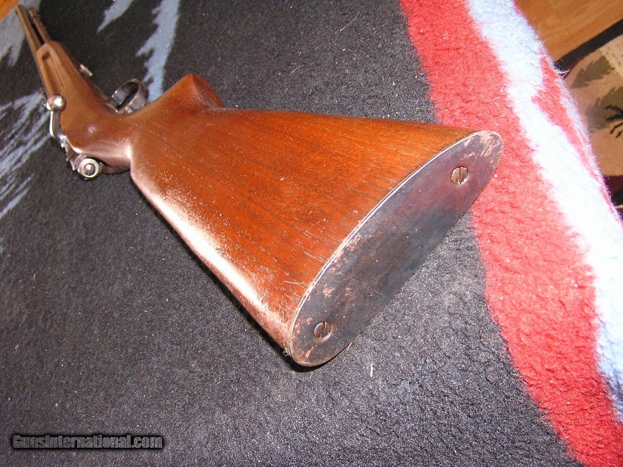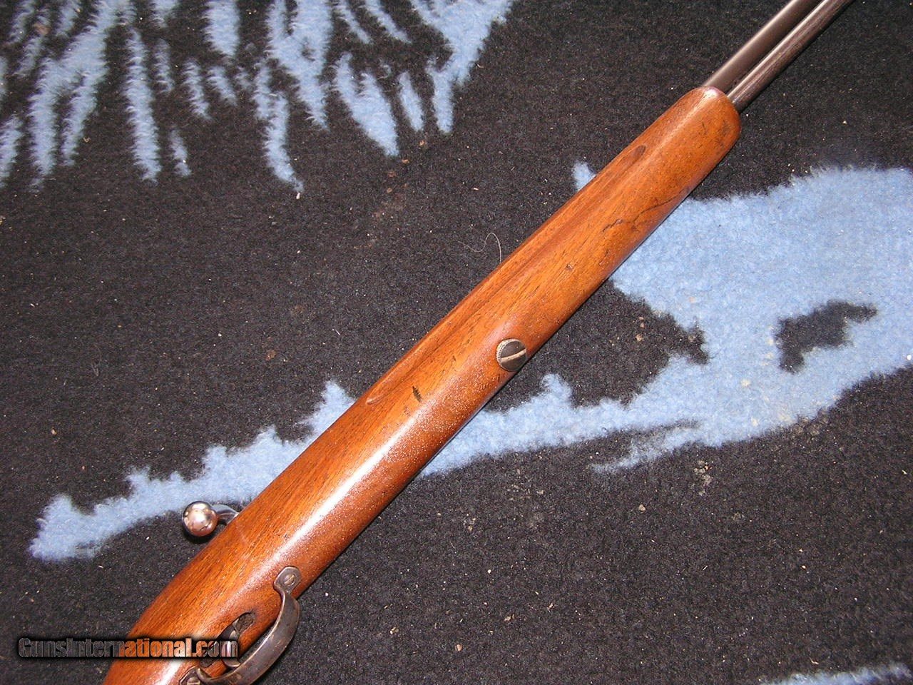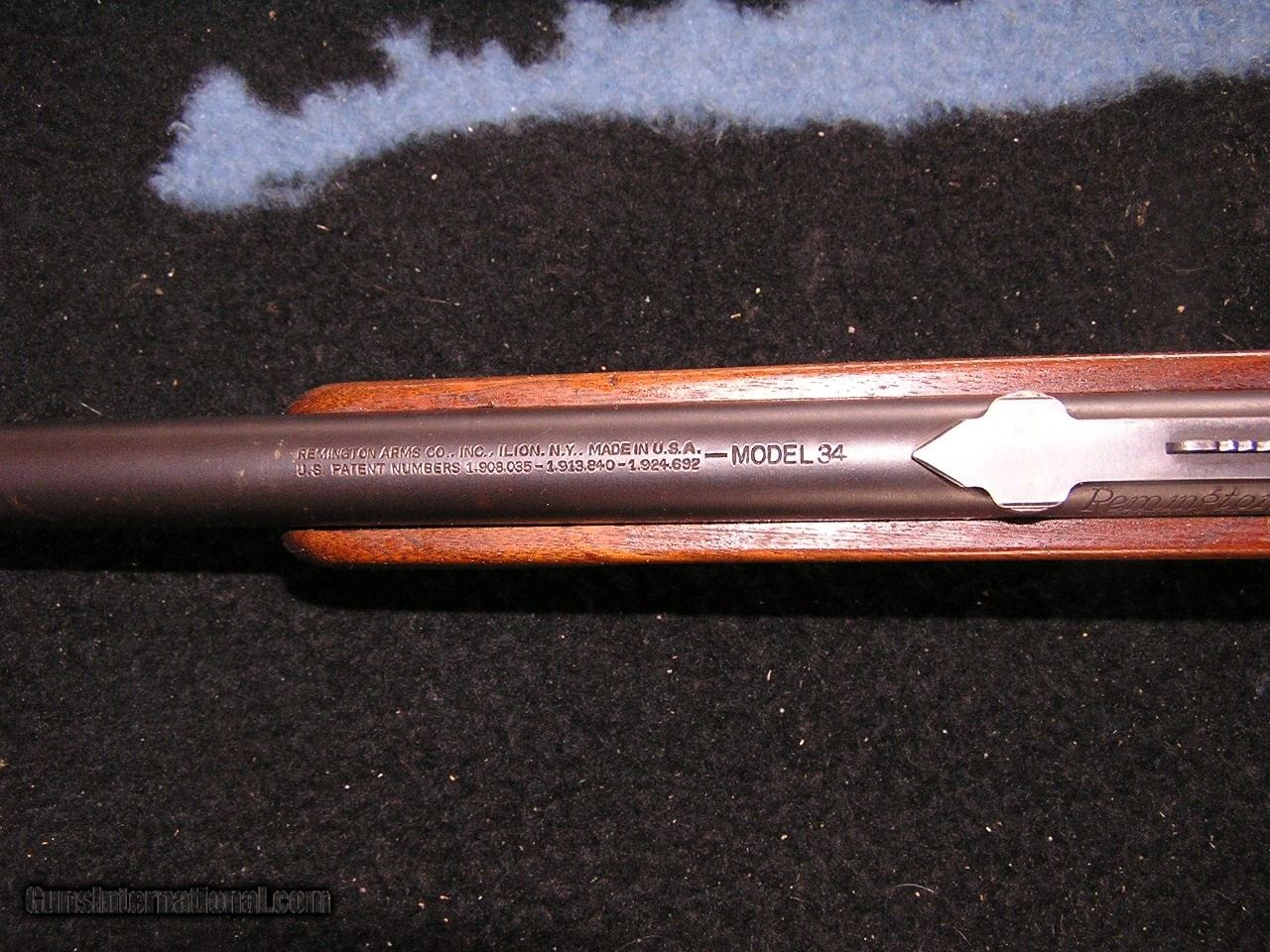 Description: From my personal collection my mdl 34 .22, 24" bbl with a perfect bore. The stock has not been refinished but a light coat of clear stock finish has been applied. Orig sights, a serial numbered gun made from '32-'36 only. 95% blue on reciever and bbl/tube. Digital image makes it look brown but to my eye it appears a nice blue. Damn cameras these days. Has the Loomis lifter feeding system and renoun for it's accuracy. I'd put it ( and many older Rem.22s) up against most of the high end .22s of today. $25.00 S&H to the lower 48 to the C&R or FFL of your choice. Not my job to know the laws where you live so I assume you do. This is a nice user, collector quality rimfire. Remember to send your prayers to the men and women of our Armed Forces SOLD Curio/Relic: Yes |