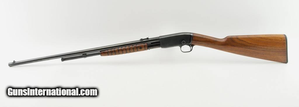 Description: Remington Model 12 .22 LR, 21" bbl, bright shiny bore, good rifling, blued finish, notch rear sight, blade front sight, SN 3157, nice smooth straight butt stock - forearm, light handling marks, 13" LOP, and black Remington butt plate. This is a clean rifle! Add 3% for Credit Card Shipping $35.00 SOLD |