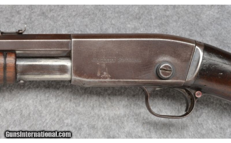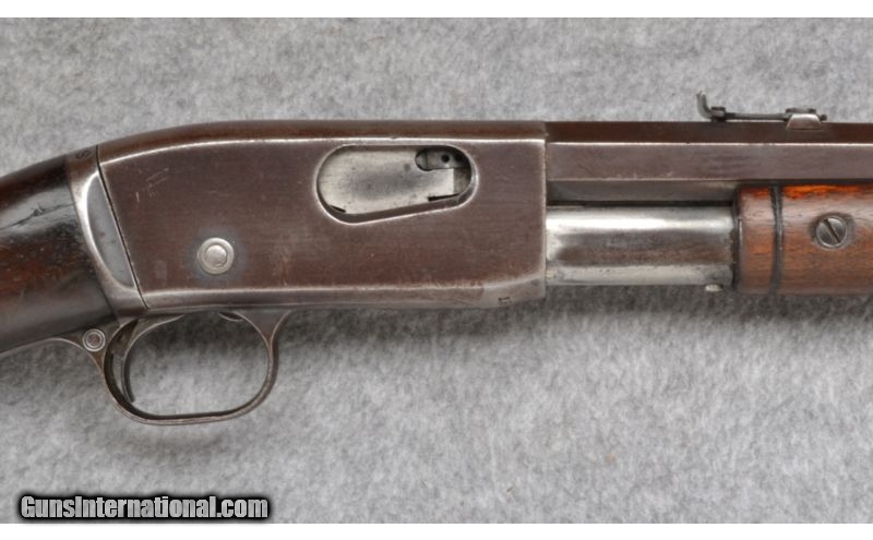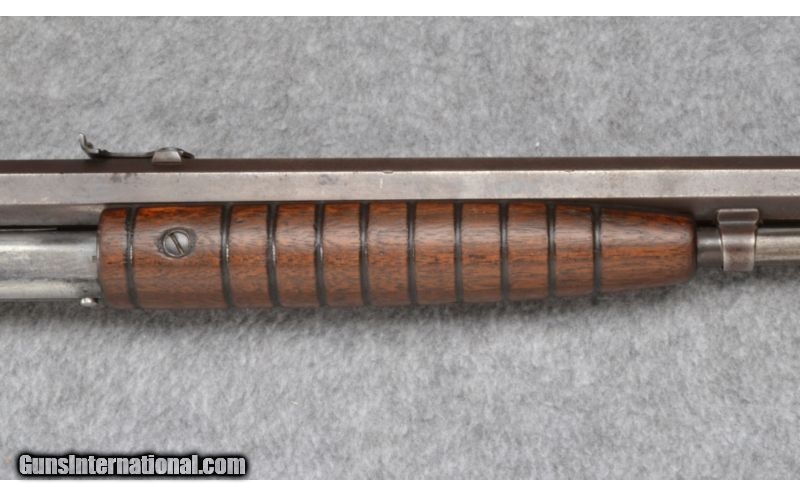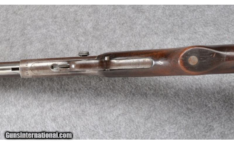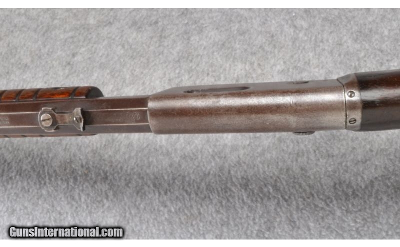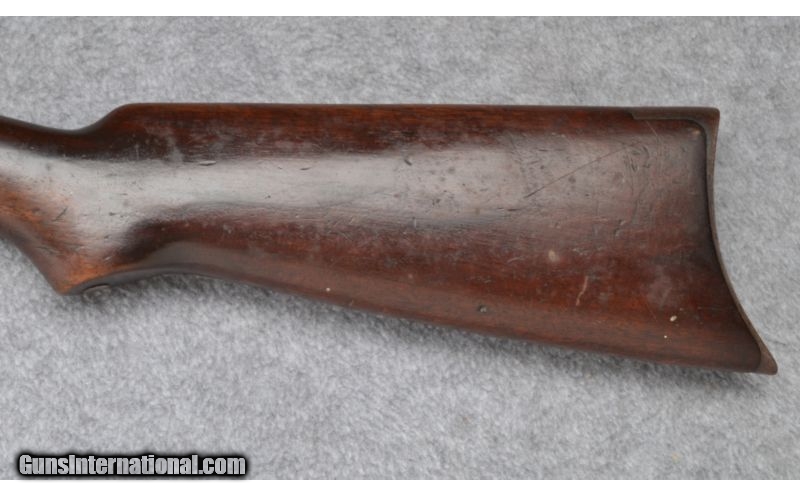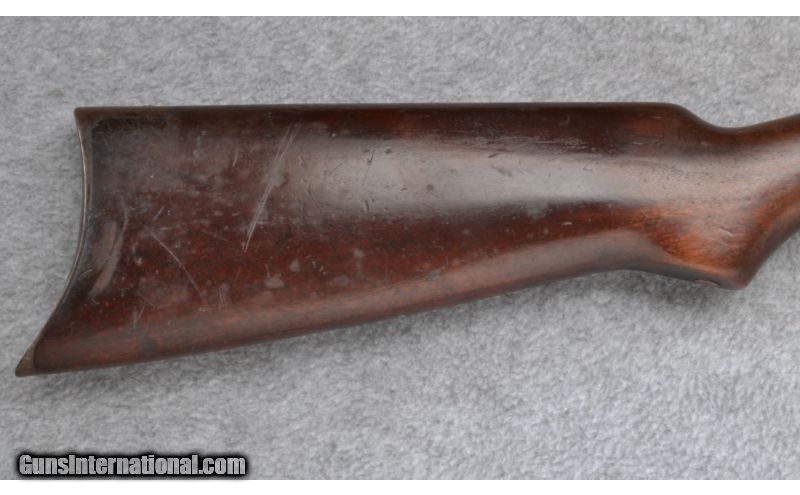 Description: Metal has turned mostly a brown patina and bore shows light pitting throughout. Wood has darkened with age and buttstock has cracks on both sides behind the receiver. Mechanical function is excellent. SOLD Manufacturer: S/N RW190XXX Caliber Info: .22 Short Metal Condition: Fair Wood Condition: Fair Bore Condition: Fair Barrels: 24" Octagon Triggers: Original Stock: Uncheckered Walnut Pistol Grip Stock Dimensions: 13 1/8" LOP Fore End: Grooved Walnut Butt Pad: Crescent Steel Weight: 5 3/4 LB Sights: Bead Front - Adjustable Notch Rear Item Location: Wheeling, WV |
