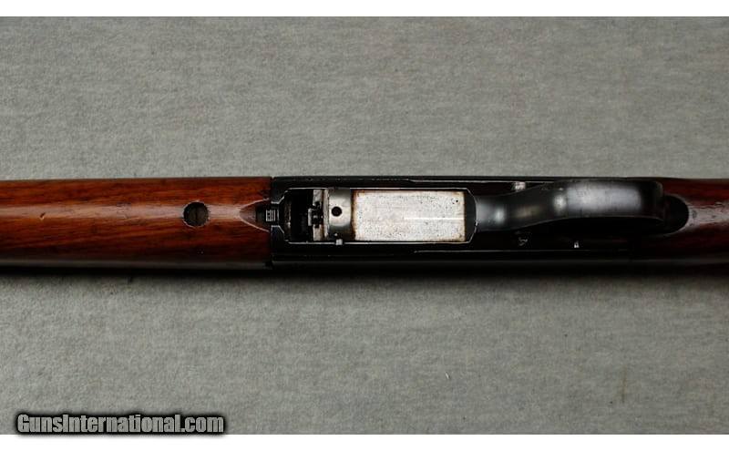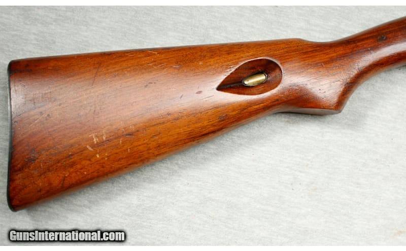 Description: Based on a John Browning design and manufactured from 1922 to 1935, the Remington model 24 is a semi-automatic rifle chambered in .22 Short. It is a takedown gun, meaning that the barrel and receiver are easily separated without tools, allowing for a smaller package for transport. This example is still in good shape and shows no rust or pitting. Stock show normal nicks and scratches. .22 Short SOLD Metal Condition: good Wood Condition: good Bore Condition: bright Barrels: 19" barrel Stock Dimensions: 13.75 Fore End: smooth wood Butt Pad: metal Weight: 4 lb - 10 oz Sights: factory sights Item Location: La Vista, NE |