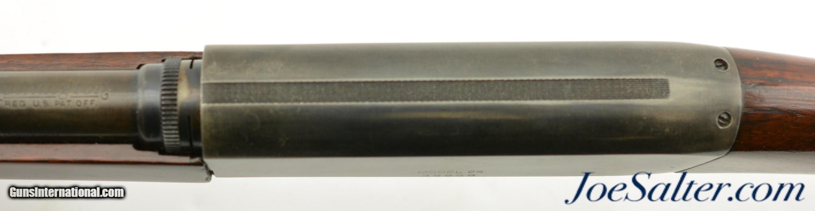 Description: Serial #39958, .22 LR, 19.5 inch barrel with a very fine, bright bore with strong rifling and some very light roughness. This is the Remington Model 24 take down semi-automatic rifle with tube magazine in the stock and bottom ejection manufactured in 1926. The barrel and receiver shows a thinning mottled blue / gray that is a mixture of later added and original finish. The stock and forearm rate excellent as refinished with a heavy gloss varnish. The take-down function works correctly and locks up properly. Mechanically it functions properly and is sighted with the original sights. This is a great looking Remington 24 that would be fun to shoot. FFL or C&R SOLD Curio/Relic: Yes |