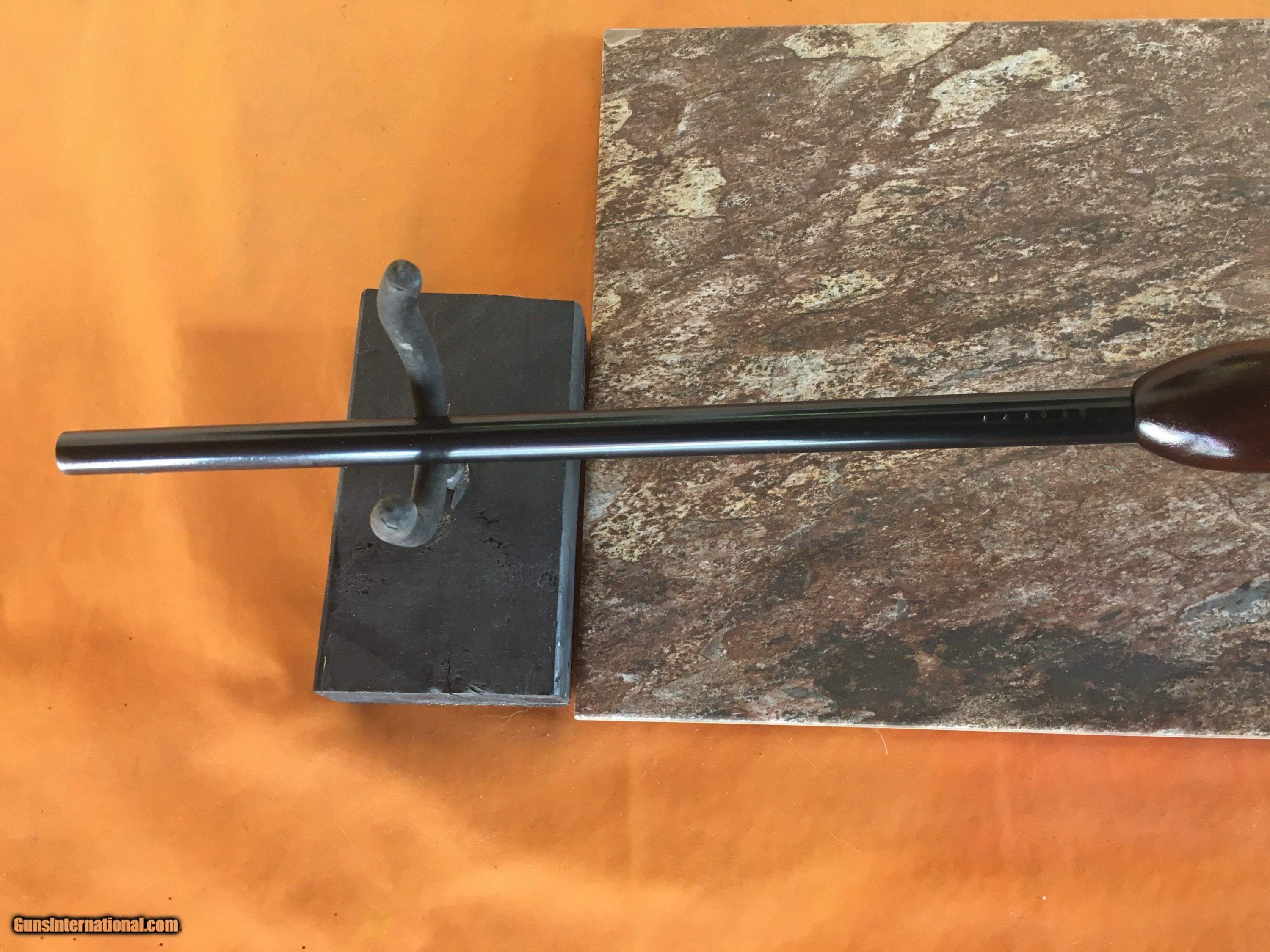 Description: Remington Model 241 Speedmaster Takedown .22 LR Rifle - Smooth 2 piece walnut pistol grip style stock and forend with metal butt plate in very good condition. 24 In. long barrel with open adj. rear sight and front bead sight. Butt feed tubular magazine. with 10 LR round capacity ammo only. Bore is clean and bright. Barrel and receiver are retaining approx. 90% bluing. Stock and forend are in excellent condition with minimal handling marks. This John Browning design is similar to the Browning model SA-22 , both being takedown models whereby the barrel separates from the receiver with a twist lock design. New soft sleeve included. The overall condition is excellent. Difficult to find in this condition. Manufactured from 1935 to 1951. This one was manufactured in 1949. Nice addition to any collection. We can ship to C&R or to your FFL dealer at a flat rate of $50.00 S&I to lower 48 states. All of our rifles have been cleaned and lubricated. SOLD Curio/Relic: Yes Rifle Caliber: .22 Long Rifle Manufacturer: Remington Model: 241 Speedmaster Serial Number: NSN Barrel Length: 24 In. long Condition: Excellent Metal Condition: Very Good Wood Condition: Very Good Bore Condition: Clean / Bright Action: Semi Auto Butt Pad: Very Good Weight: 5 lbs. Sights: Open / Bead Case: New Soft Sleeve |