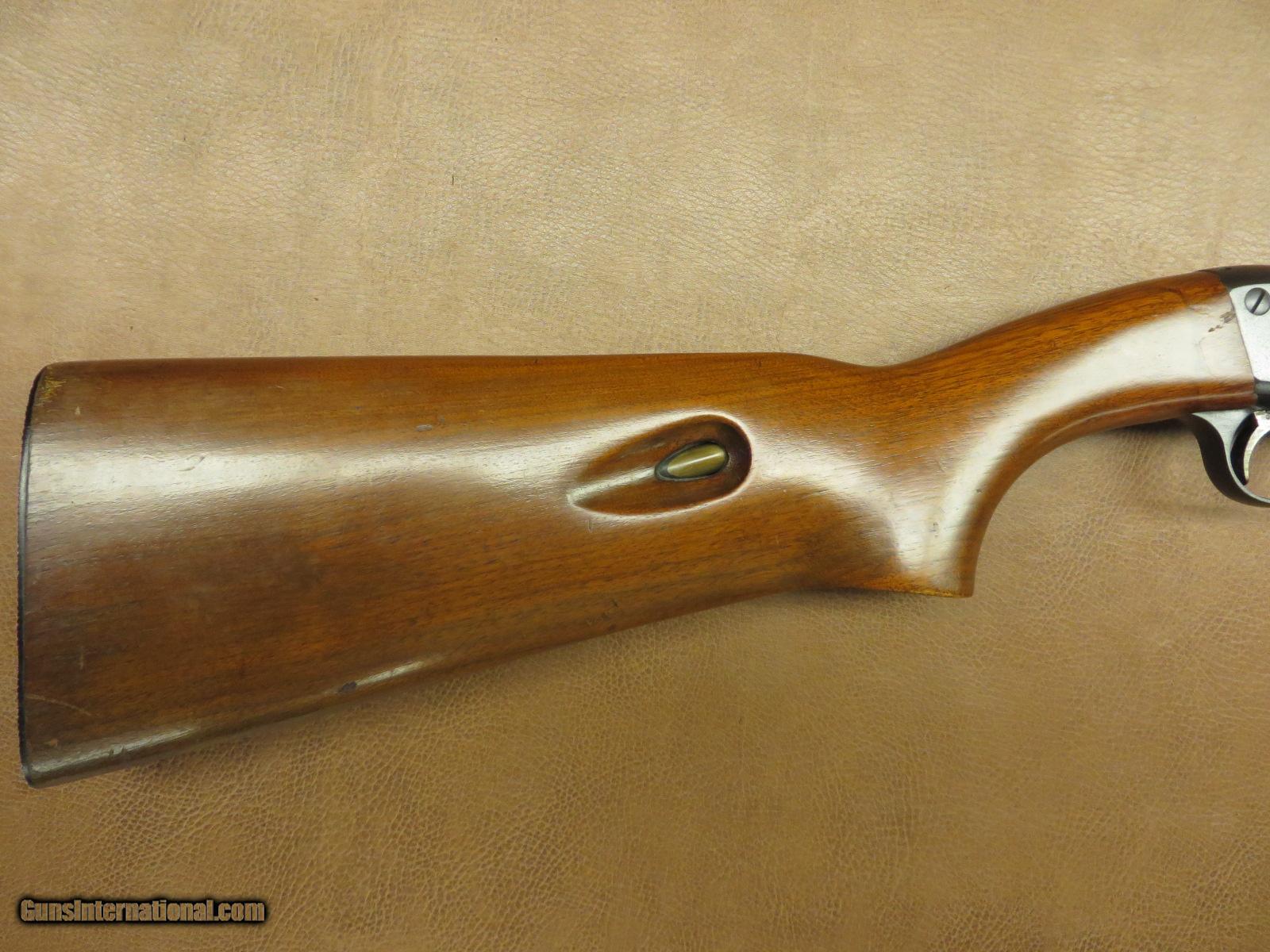 Description: .22 Long Rifle has 24 inch barrel with original sights. Serial number 98xxx. Non checkered walnut with original checkered aluminum butt plate and magazine tube through butt. Blue is near 95% and the wood is 85-90%. SOLD |