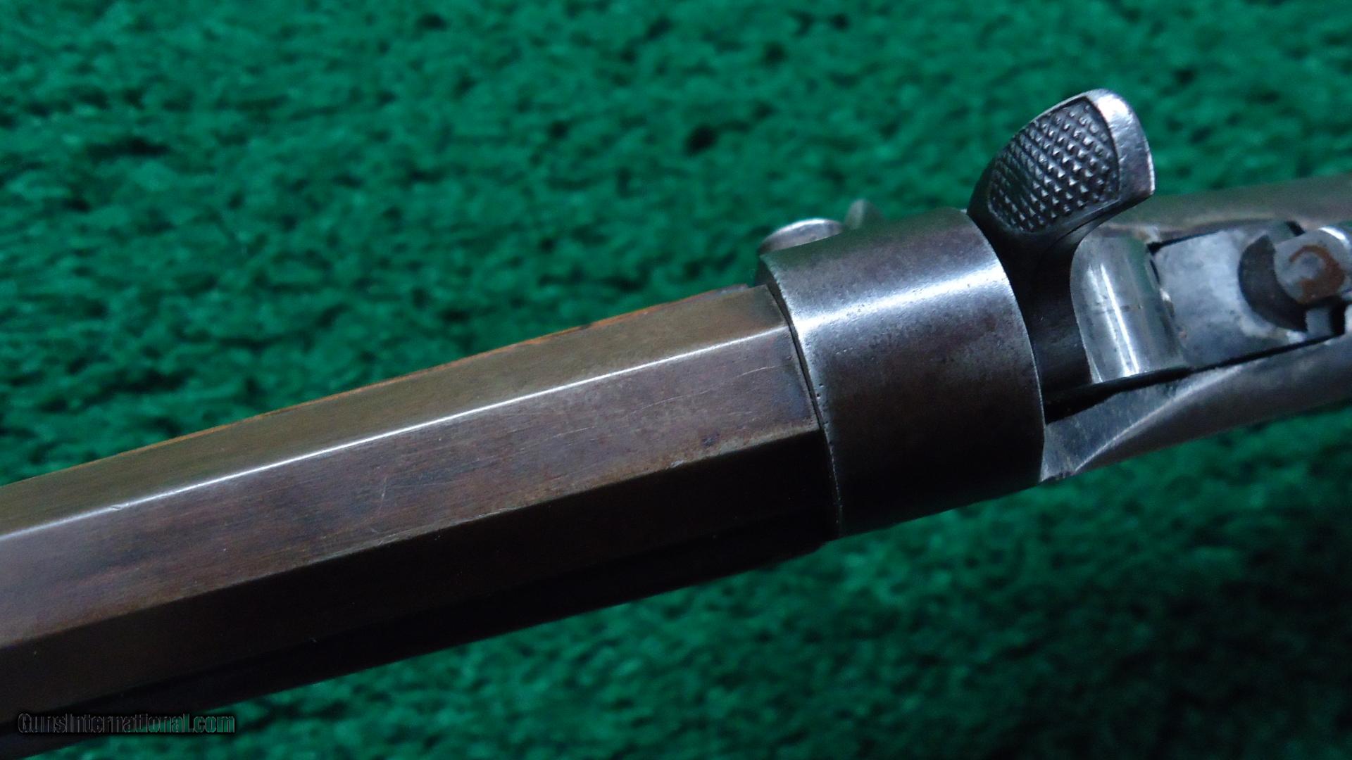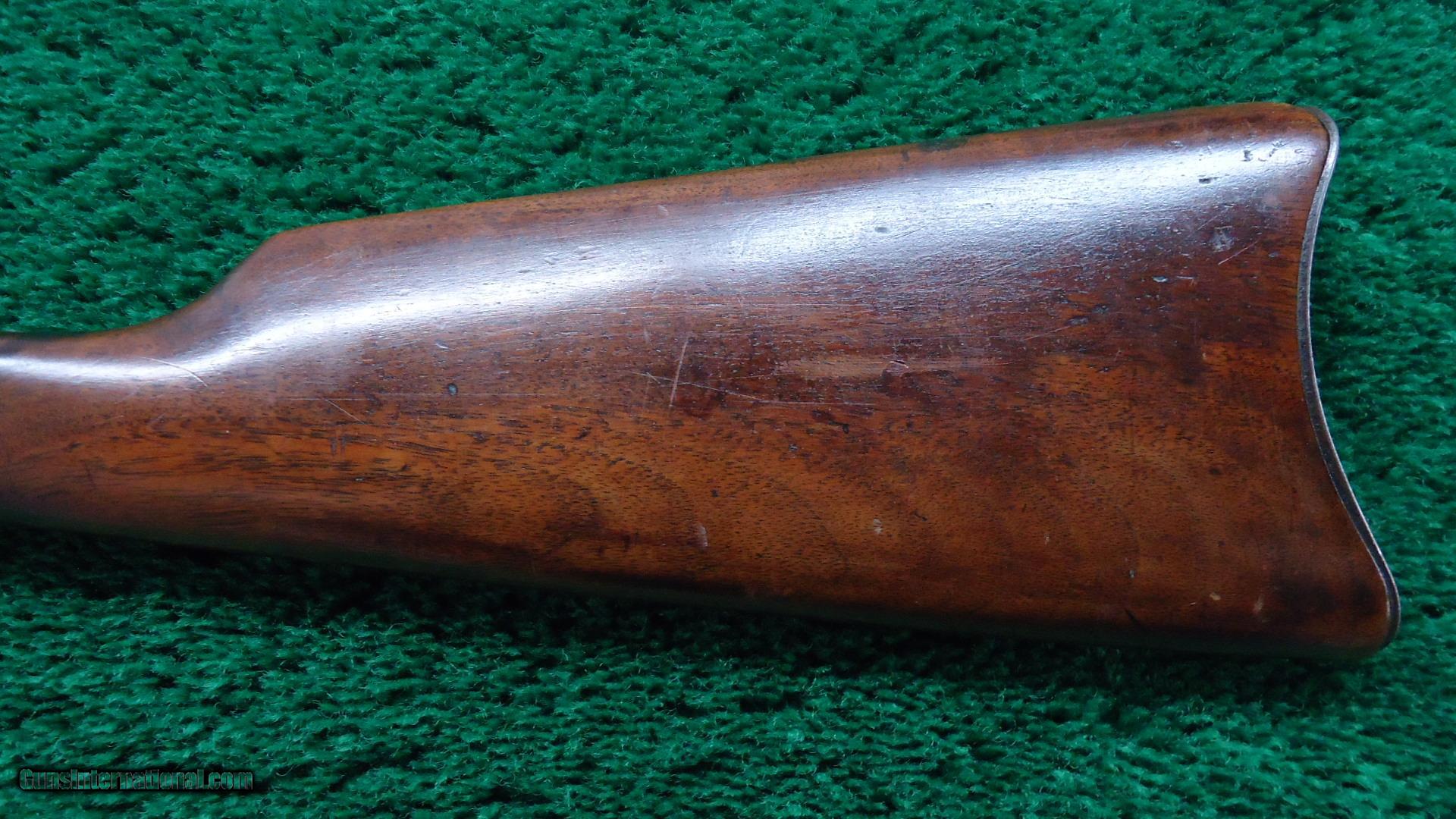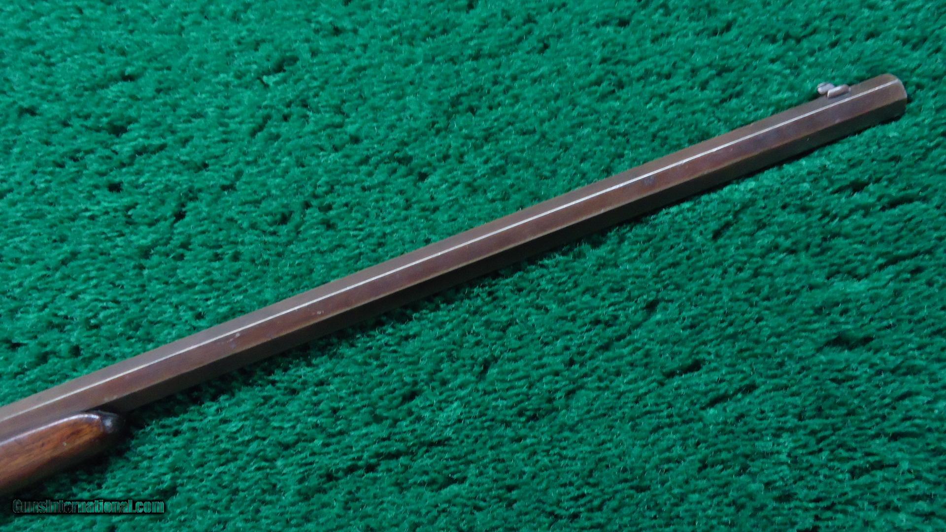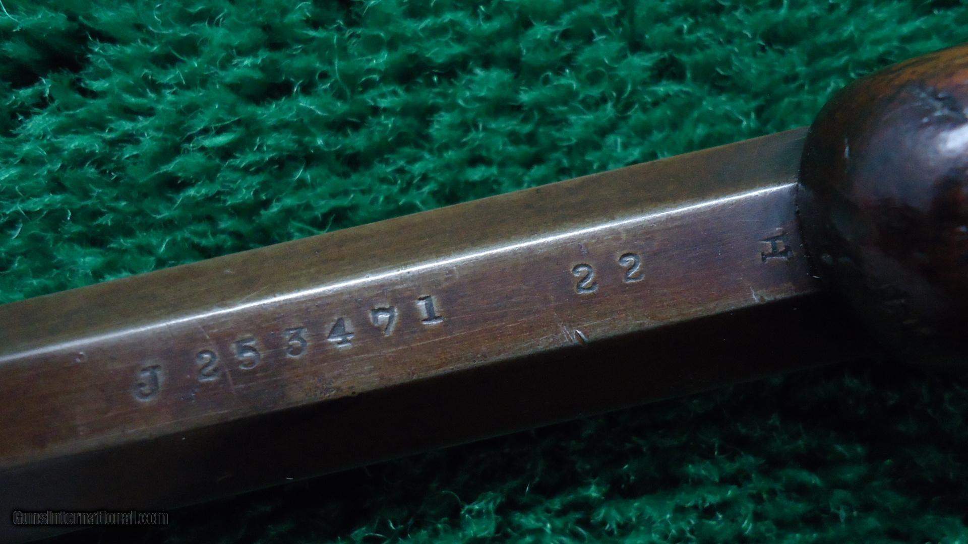 Description: Cal 22. Orig sights. 22-1/2" bbl. Fair bore. Wood shows some use but is generally VG with the correct "S" style rifle buttplate. Overall metal has turned a plum/brown. Good markings. Sharp corners. No pitting and has traces of blue. Not a bad old gun. Leroy Merz Antique Firearms specializes in antique and vintage Winchesters and other fine American firearms. Since 1965 Mr. Merz has taken part in the world of firearms and has been a contributor to many well known reference books. Just recently we mailed the 127th edition of our privately-published catalog. We have hundreds of additional guns in every price range at our home online. Search for Merz Antiques in google. SOLD Curio/Relic: Yes |
