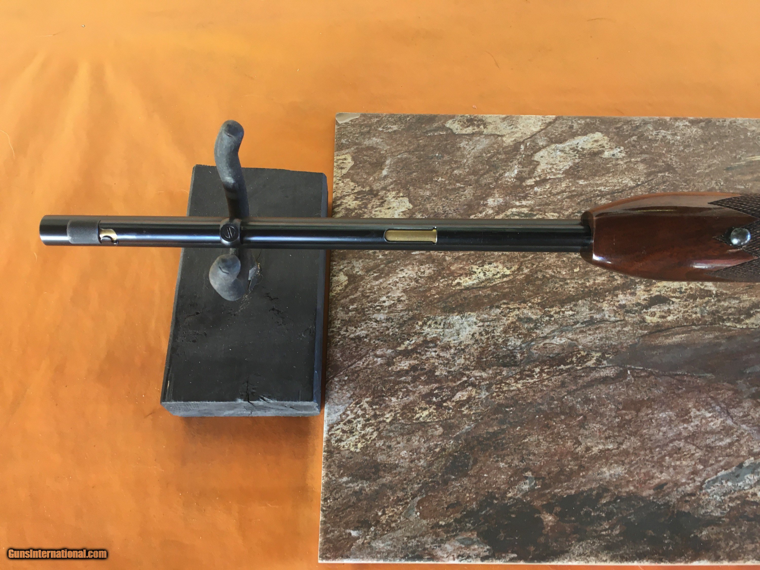 Description: Remington Model 552 BDL Speedmaster - Semi - Auto .22 LR Rifle - Checkered walnut Monte Carlo pistol grip style stock and foren with swivel stids and butt plate. 25 In. long barrel with an adj. open rear game style sight and a ramped front blade sight. Tubular magazine will hold 20 short , 17 long and 15 LR ammo. Receiver is grooved for scope . Includes a like new Redfield 3x9xWA Scope with see thru rings and clear lens. Barrel and receiver are retaining approx. 95% plus bluing. Bore is clean and bright. Stock and forend are in excellent condition with some minimal handling marks. Includes anew soft sleeve. Overall condition is excellent . Does not appear to have had much use. Tested with both short and LR ammo performed perfectly. Very nice addition to any collection. Manufactured in 2005. We can ship to your FFL dealer at a flat rate 0f $50.00 S&I to lower 48 states. All of our rifles have been cleaned and lubricated. SOLD Rifle Caliber: .22 Long Rifle Manufacturer: Remington Model: 552 BDL Speedmaster Serial Number: D1401035 Barrel Length: 25 In. long Condition: Excellent Metal Condition: Excellent Wood Condition: Very Good Bore Condition: Clean / Bright Action: Semi Butt Pad: Excellent Finish: Glossy Weight: 6 Lbs Case: New Soft Sleeve |