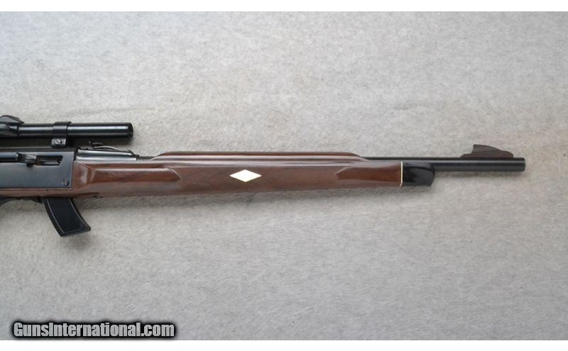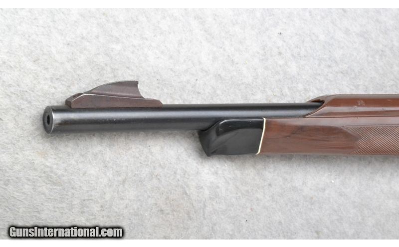 Description: This Remington Model Mohawk 10C is a right hand semi-auto rifle in .22 Long Rifle Cal. Only. It has a 19.5 inch barrel. A blade front sight and an adjustable notch middle sight. It is outfitted with a Weaver 4X Scope. The butt stock is a diamond checkered grip brown nylon pistol grip with a black cap. The forearm is a diamond checkered grip brown nylon with a black tip. .22 Long Rifle SOLD Chambers: Detachable Magazine. Metal Condition: Good. Has some freckling and minor handling marks. Bore Condition: Excellent. Barrels: 19.5 inch barrel. Stock Dimensions: LOP 13 3/4 inches. Fore End: Diamond checkered grip brown nylon with a black tip. Butt Pad: Grooved black plate. Weight: 4 lb. 4 oz. Sights: Raised blade front. Adjustable notch middle. Weaver Marksman 4X Scope. Item Location: Richfield, WI |