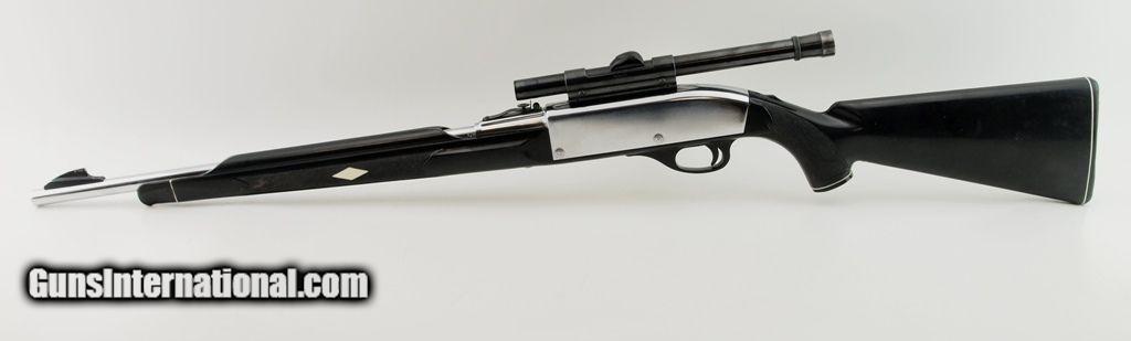 Description: Remington Nylon 66 Apache .22 LR, 19 1/2" bbl, good bore, Stainless Steel finish, Weaver B4 scope, black nylon grip stock with white diamonds in the forearm and white accents. Add 3% for Credit Card Shipping $30.00 SOLD |