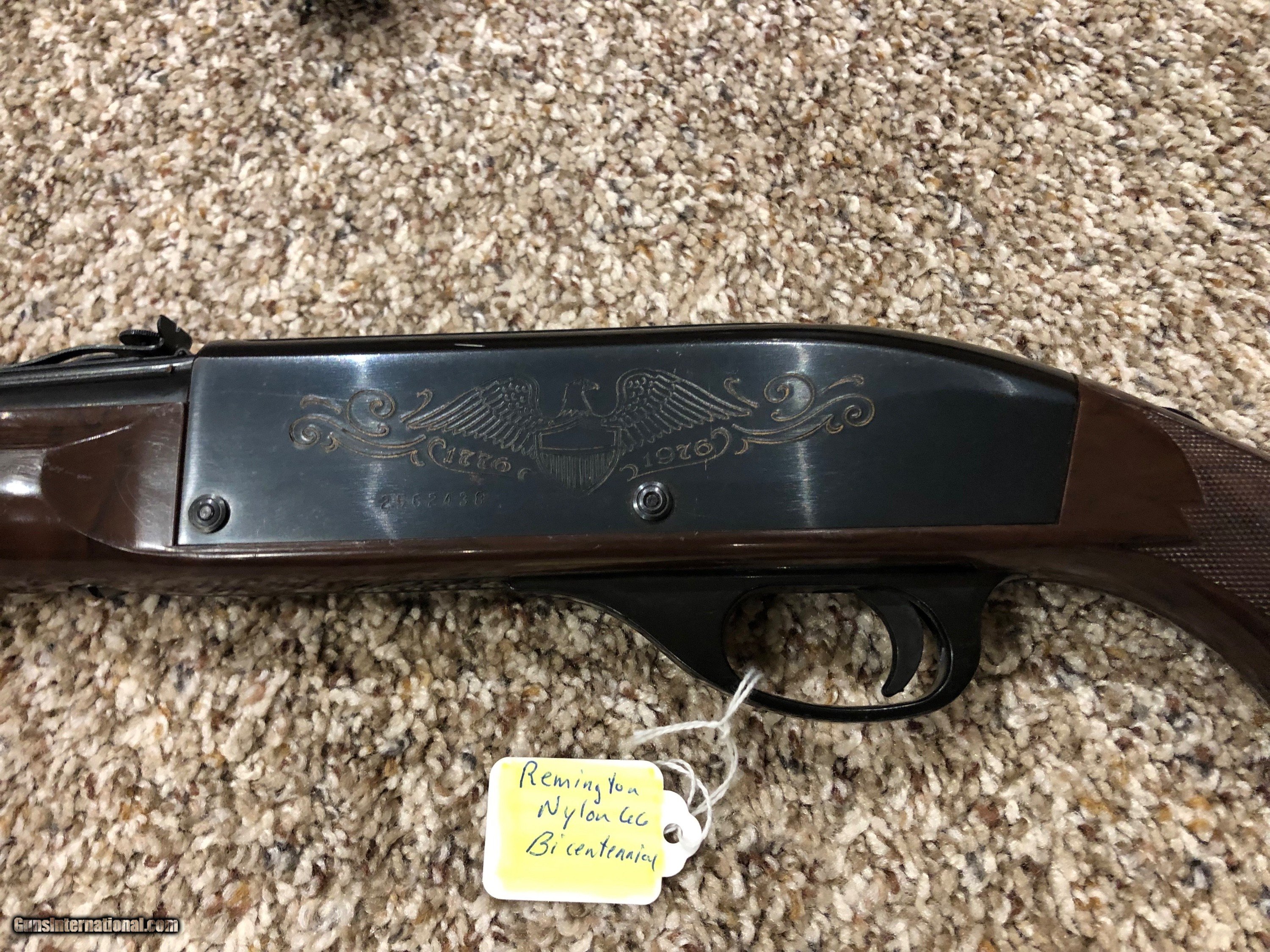 Description: Here we have a few Remington nylon rifles. Please feel free to ask any questions that you may have or if you need more pictures. Top Remington nylon 77 Apache. Gun is in really nice shape and still has the original 77 marked magazine. It also has some very nice bright green swirls in the stock. Pending Middle Remington nylon 66 bicentennial edition. Gun is in great shape and still has nice yellow color in the emblem. Pending Bottom Remington nylon 66. Gun is in nice shape and works great has a few marks.pending please add $50 for shipping thank you for looking SOLD Rifle Caliber: .22 Long Rifle Manufacturer: Remington Model: Nylon |