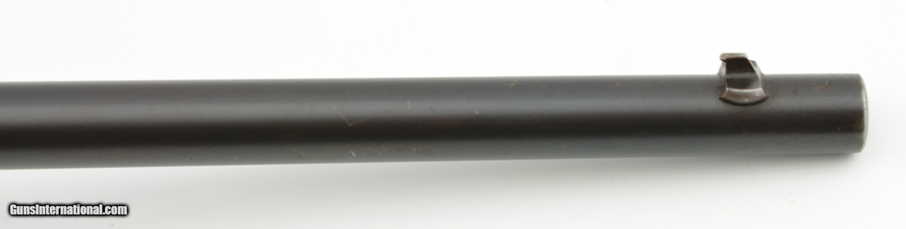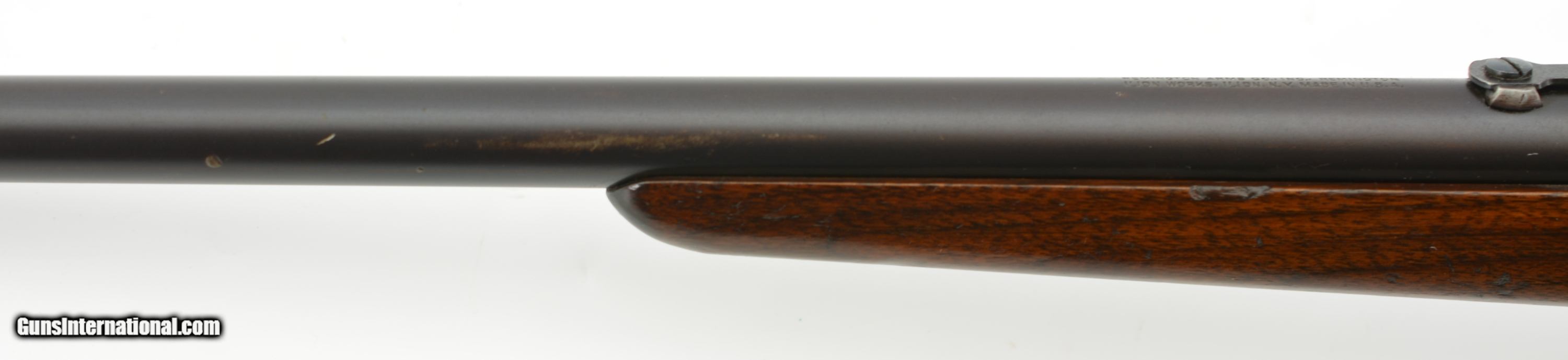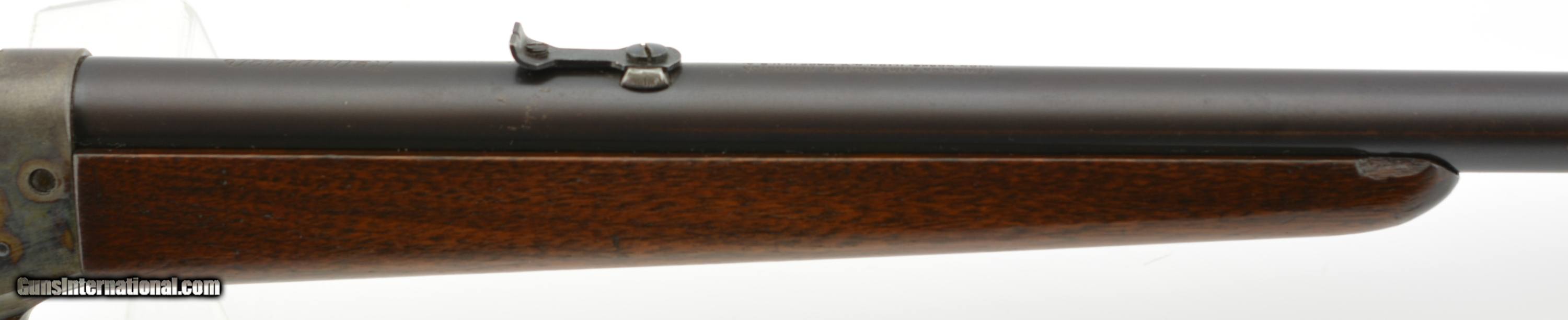 Description: Serial #355023, .25-10 RF, 22 1/2" round barrel with an excellent, bright bore. The barrel of this February, 1933 date-coded rifle retains about 92-95% of the original blue, with the balance turned to a mellow plum-brown patina. The frame retains a commensurate amount of original color case-hardening, with some fading to speckled gray along the wrist tang, and on the trigger guard bow. The small parts retain about 97-98% original blue, and all markings are crisp and clear. The smooth walnut buttstock and forend are in fine condition with some light handling marks present in the original finish, as well as a single small chip at the right front of the forend nose, and some minor marks in the wood near the frame screw on the left side. The original sporting sights are still present, and the action is fully functional. This is a splendid example of a small frame Rolling Block, and rates excellent overall. FFL or C&R SOLD Curio/Relic: Yes |