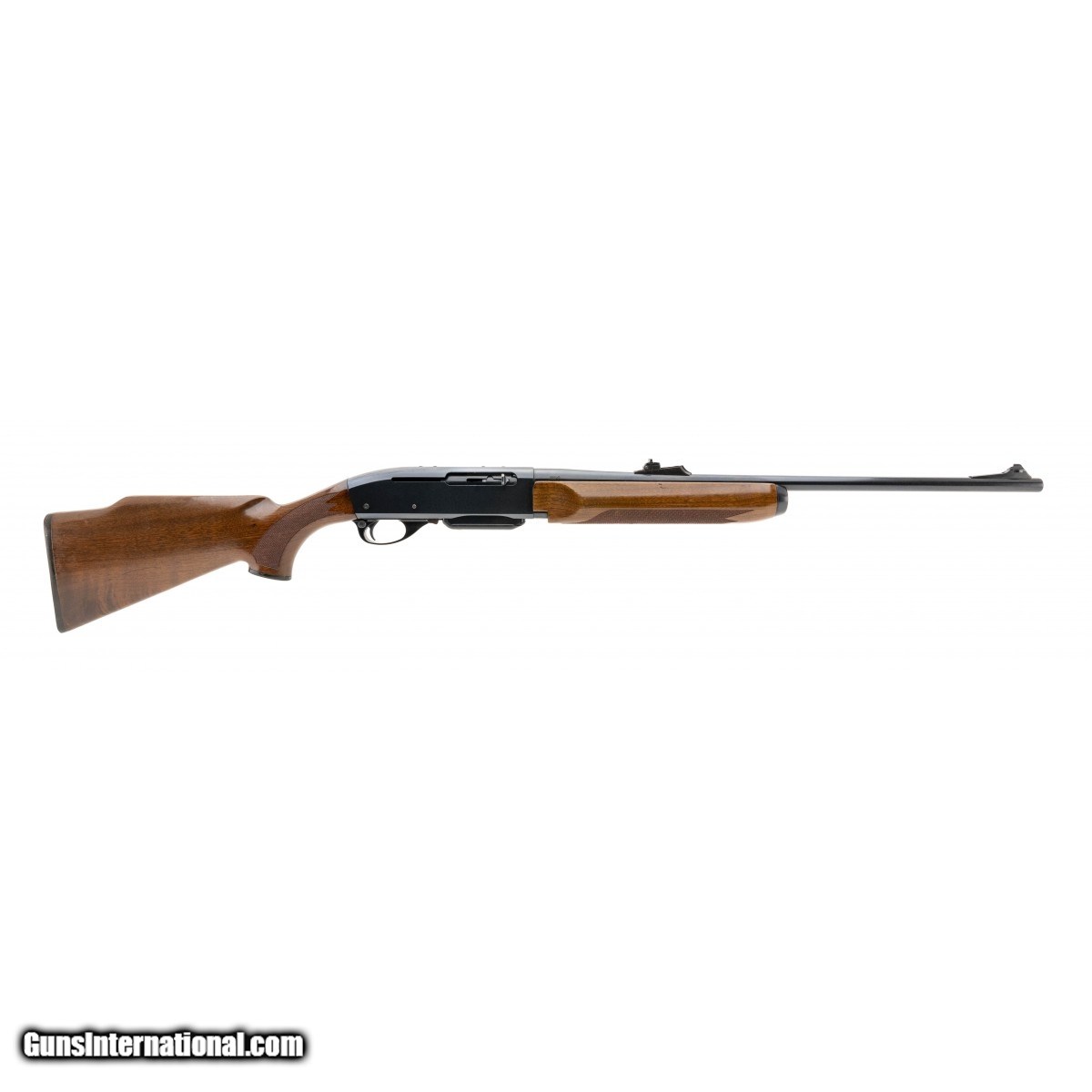 Semi-auto deer rifle with checkered walnut stock and open sights. Very good condition with light hunting wear.