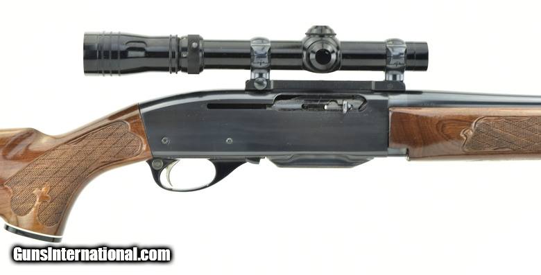 Description: " Remington 742 Woodsmaster .308 Win caliber rifle. 20” Semi-auto carbine. The barrel has been Mag-na-ported and the sights removed. Has a Redfield 1.75-5X scope.