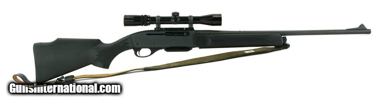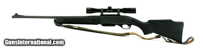 Remington 7400 .243 Win caliber rifle. Semi-Auto deer rifle with Synthetic stock. Has Bushnell 3x9 scope.