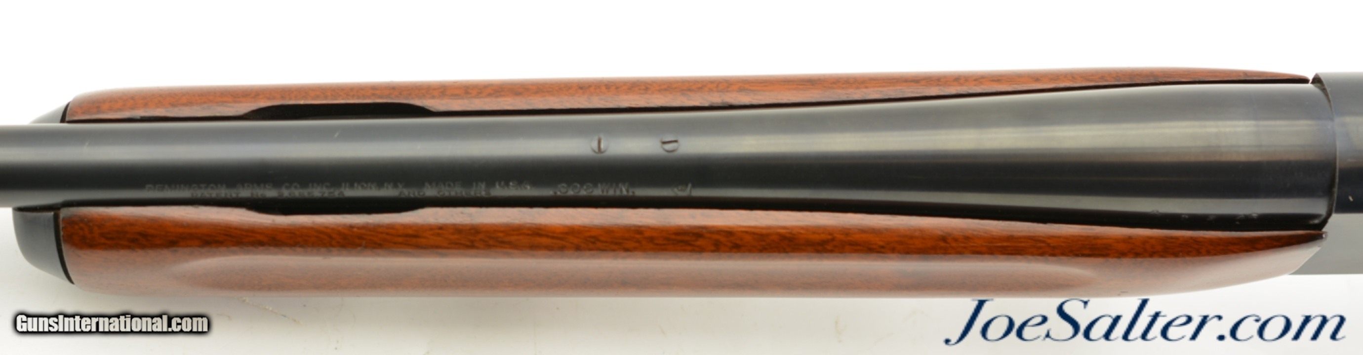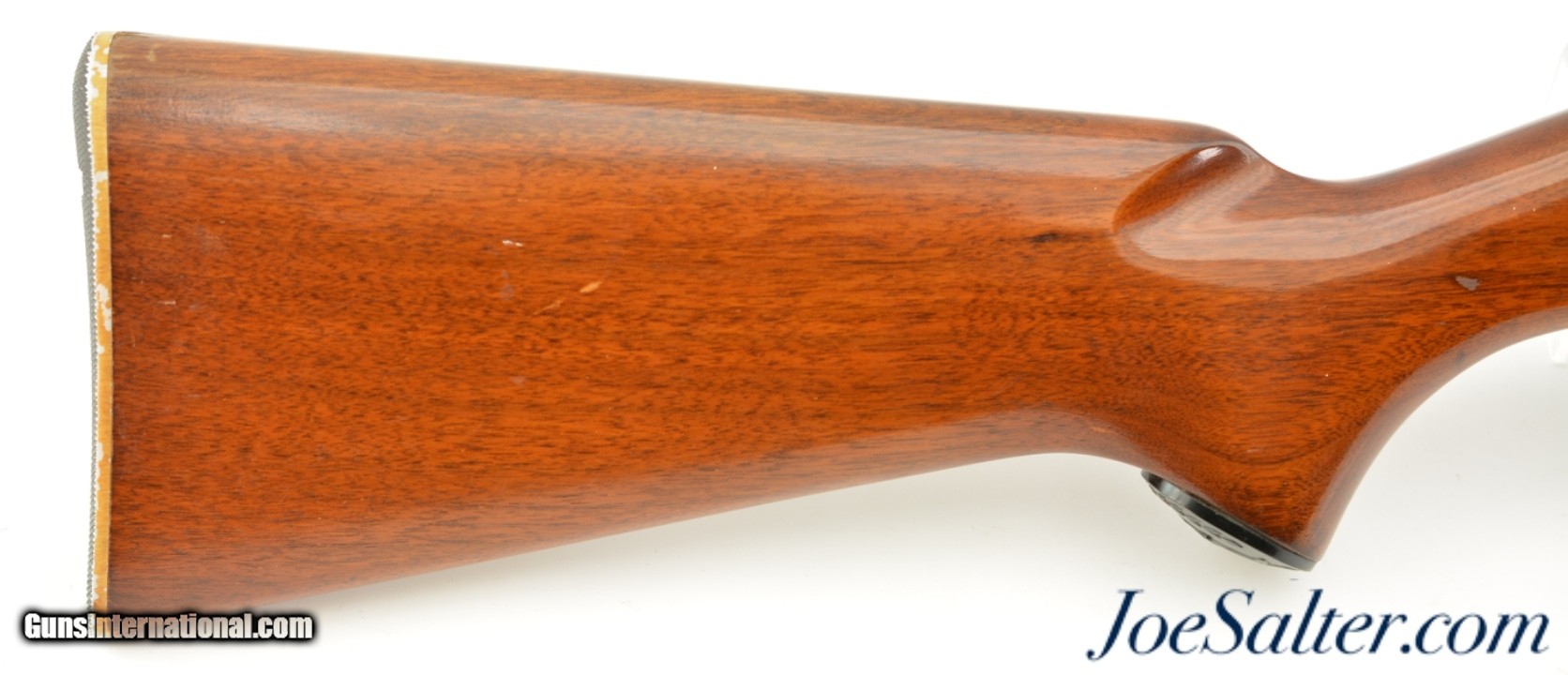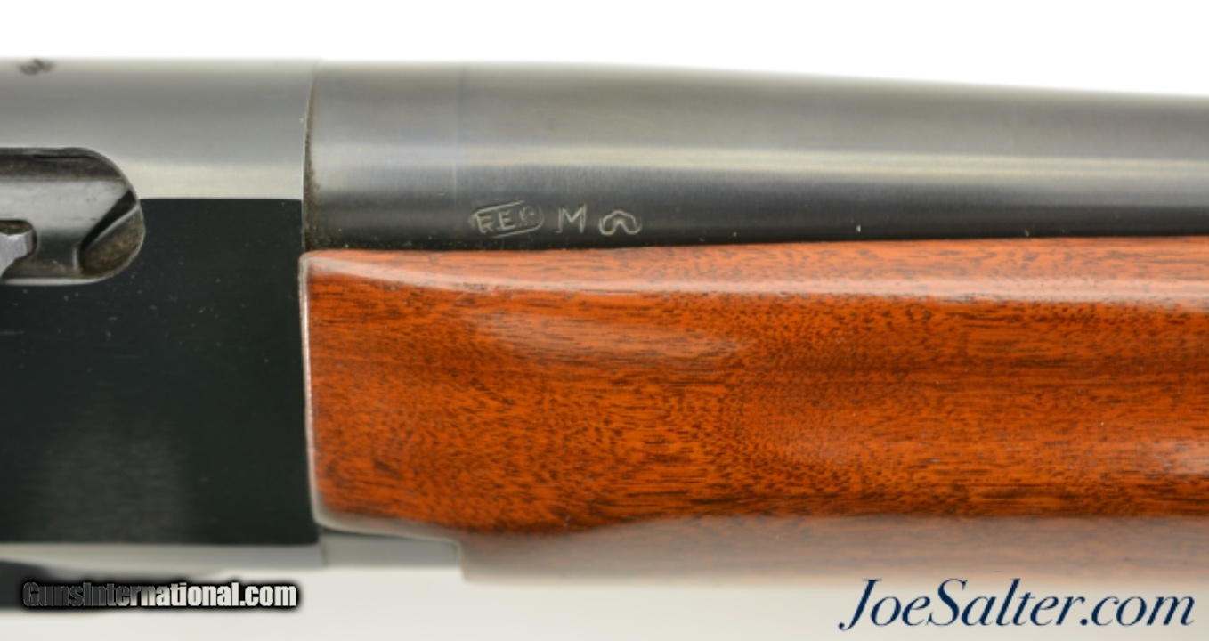 Description: Serial #223095, .308 Winchester, 22 inch barrel with a bright, excellent bore. This is the Remington Model 740 Woodsmaster semi-automatic rifle manufactured in 1958. The early rifle remains in excellent condition retaining virtually all, 98-99% of the original blue finish on the barrel and frame with some scattered handling marks. The walnut stock and forearm rate excellent with very minor handling and storage marks. The gun is sighted with a receiver mounted Lyman peep sight and ivory bead front sight. It comes with one original 4 round magazine. An excellent example of a classic Remington deer rifle. FFL or C&R SOLD Curio/Relic: Yes |