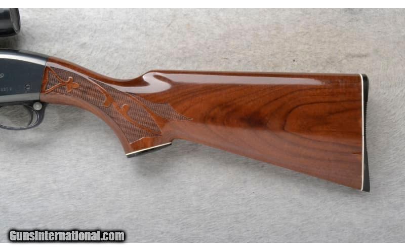 Description: This Remington Model 1100 is a right hand semi-auto shotgun in 12 Ga. It has a 21 inch Fully Rifled barrel. A 2 3/4 inch chamber. It is outfitted with a Simmons Scope. The butt stock is a checkered grip walnut pistol grip with a black cap. The forearm is a checkered grip walnut with finger grooves. Manufactured 1974. 12 Gauge SOLD Chambers: 2 3/4 inch. Metal Condition: Very Good. Left side of receiver freckling. A few very minor handling marks. Wood Condition: Very Good. Minor handling marks and wood swell at butt plate. Bore Condition: Shiny. Barrels: 21 inch. Stock Dimensions: LOP 14 inches. Fore End: Checkered grip walnut with finger grooves. Butt Pad: Remington grooved black plate. Weight: 8 lb. 8 Oz. Sights: Simmons 2x32 shotgun scope. Chokes: Fully Rifled. Item Location: Richfield, WI |