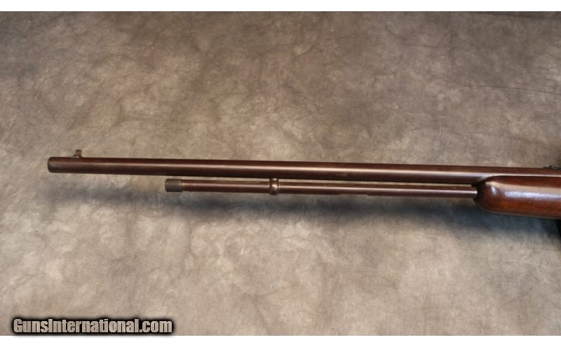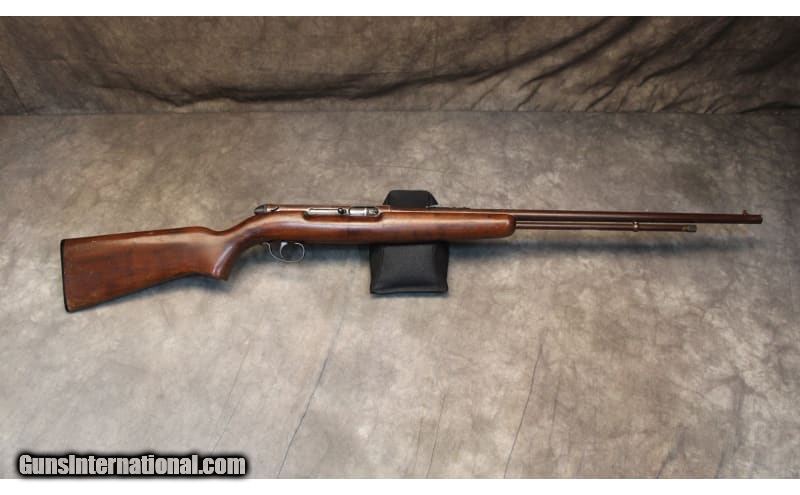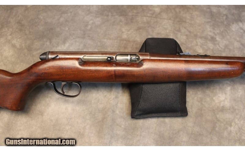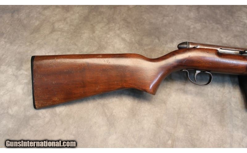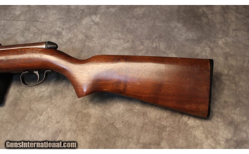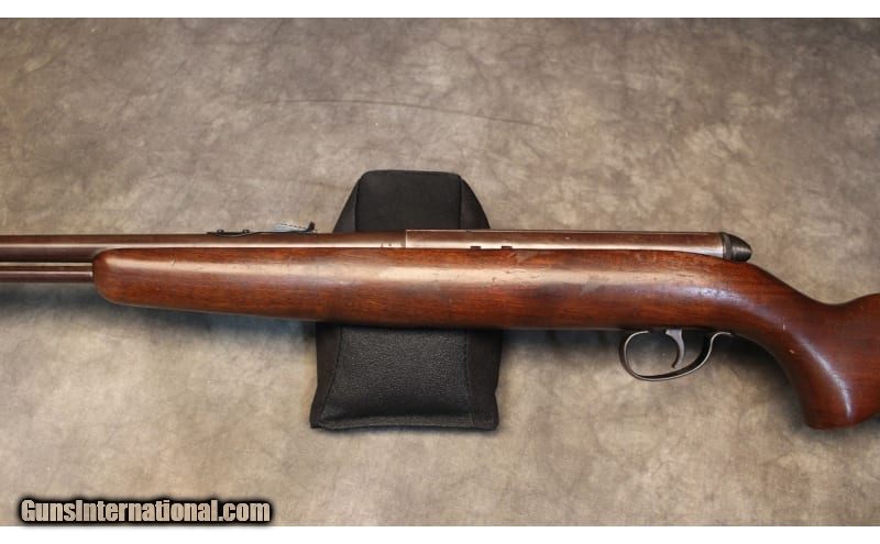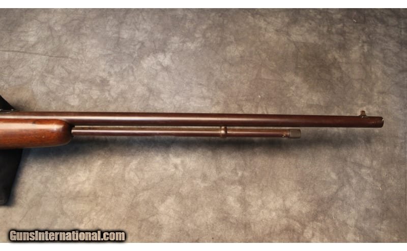 Description: This Remington 550-1 is in good condition. Its blue finish has all but gone. The metal has a brownish patina. It would still make a good rifle for small game. .22 Long Rifle SOLD Chambers: .22 LR Metal Condition: Good Wood Condition: Good Bore Condition: Good Barrels: 24 Butt Pad: Hard plastic Weight: 6.2 lbs Sights: "Leaf rear, adjustable for elevation Item Location: Columbia, MO |