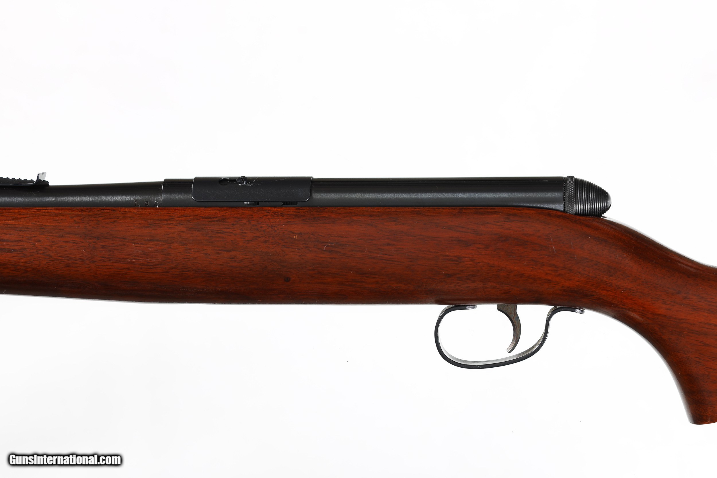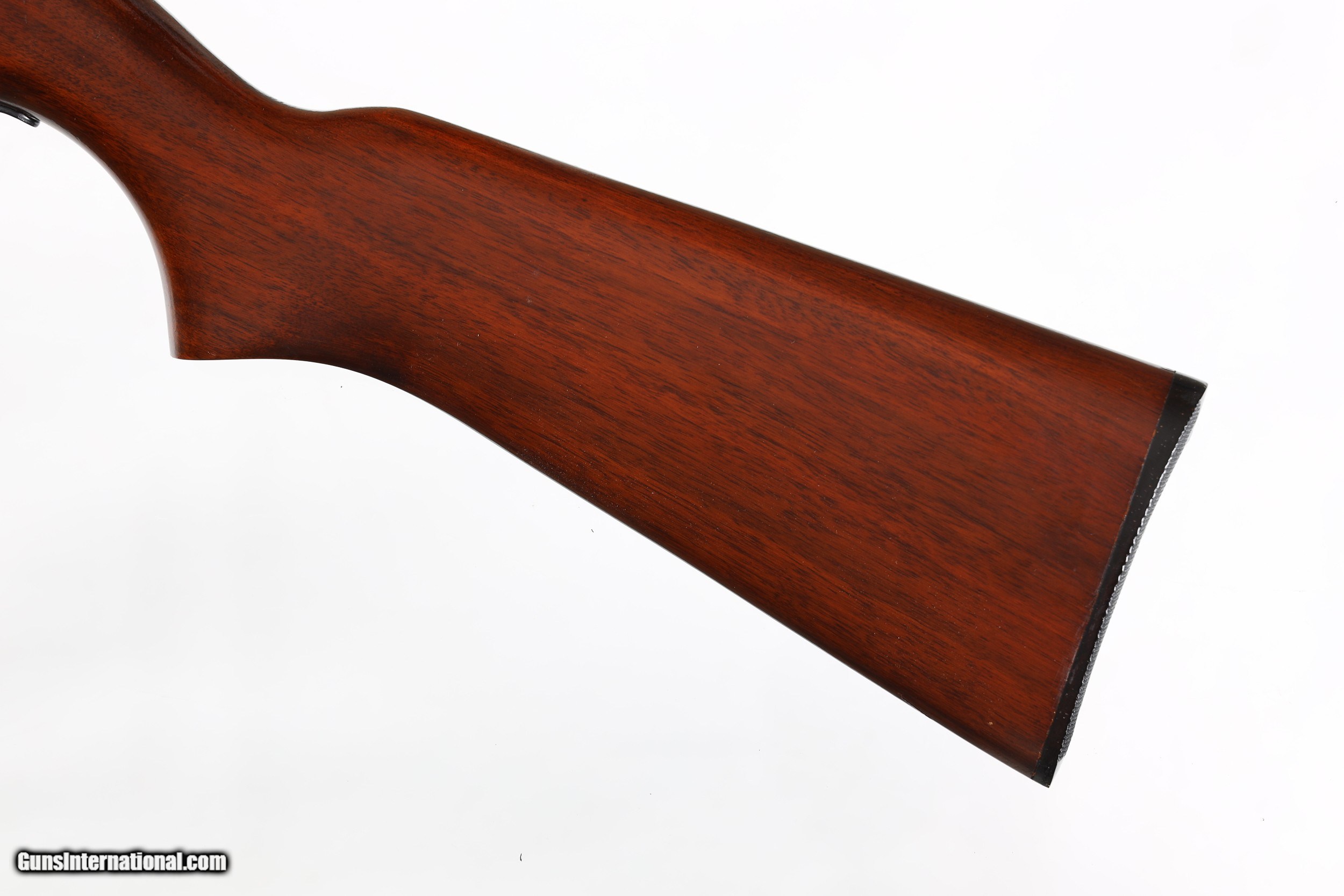 Description: Metal surfaces display near mint original finish, possibly revarnished stock with tape residue on right side of stock. Introduced in 1946. Caliber .22 lr, Barrel 24", C&R. SOLD Curio/Relic: Yes Manufacturer: Remington Model: 550 Serial Number: NSN Caliber Info: .22 lr Condition: Excellent plus overall condition. Action: Semi Rifle |