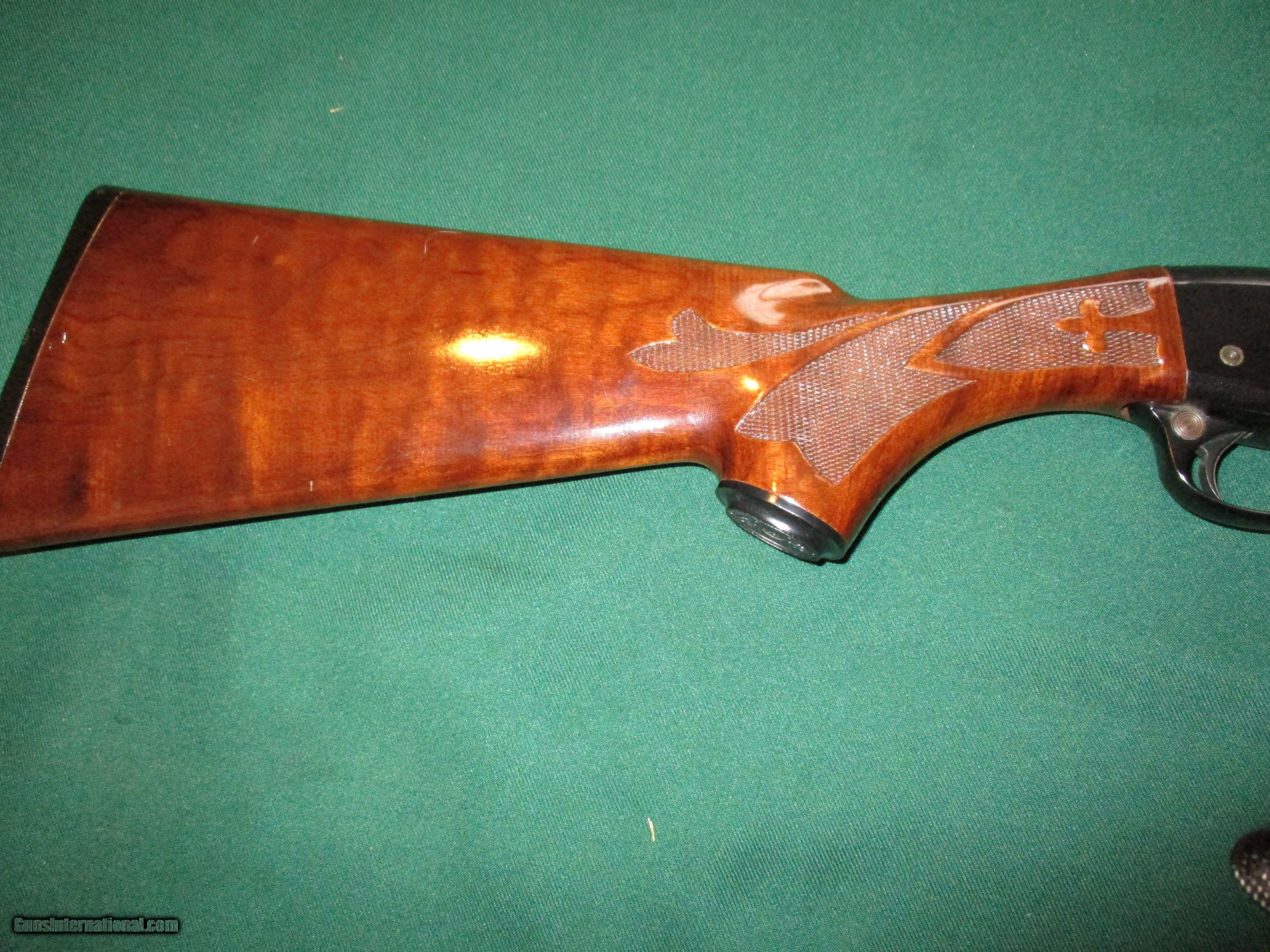 Description: 22" bbl. ramp blade front, adj. rear, extracing cartridge deflector, Exotic American walnut with flur 'd lei checkering, 99% OA SOLD |