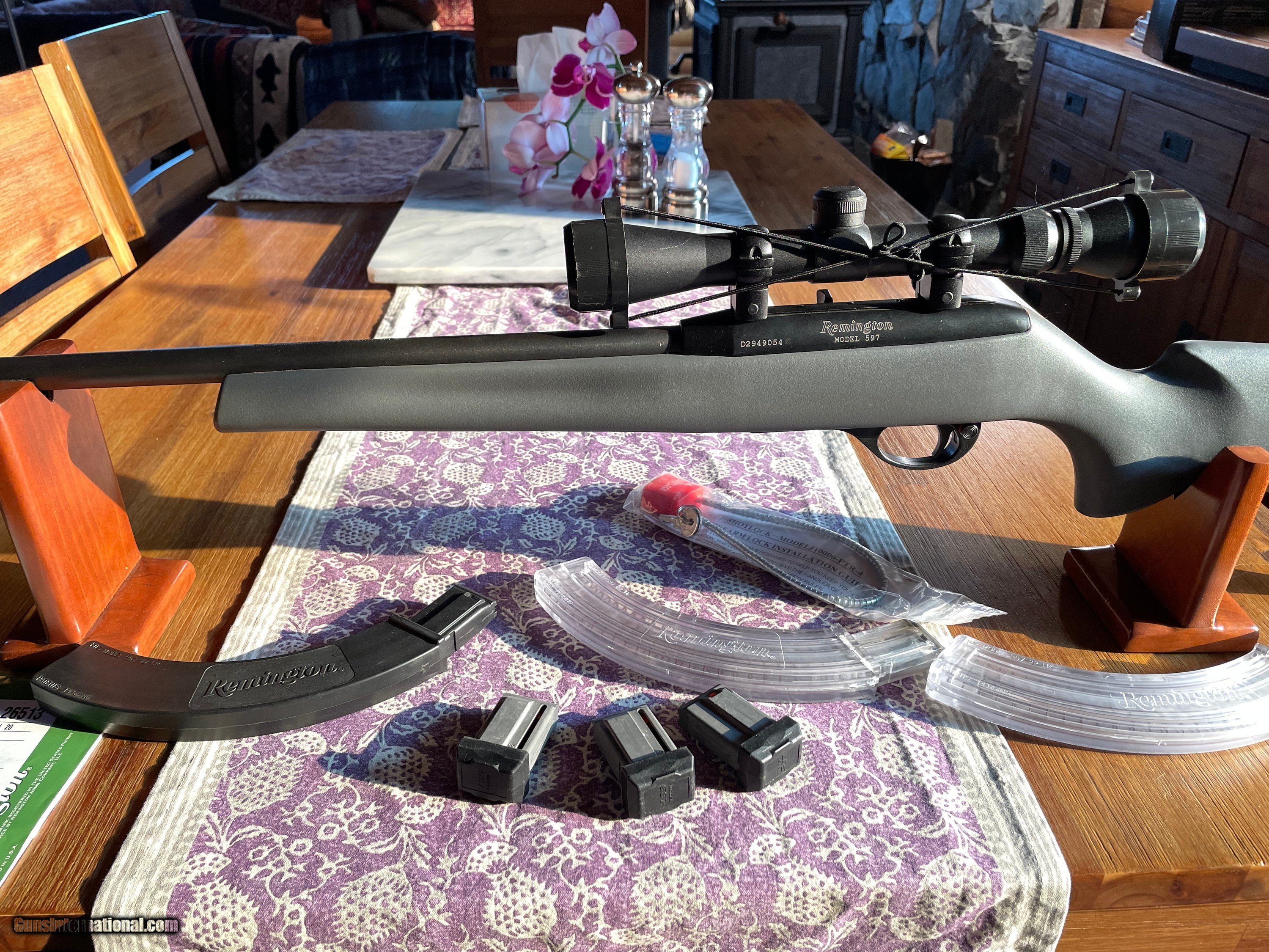 Description: SOLD Remington Model 597 semi-auto in .22 Long Rifle with factory scope, three ten-round and three 30-round factory mags plus manual and lock. Autoloading rimfire rifle with 20" barrel. This carbine has been fired, but barely. In excellent condition. I'm retired law enforcement and not a dealer so please refer to photos to personallty assess this rifle. Must ship to FFL. Please add &75 for shipping. Sale price: $350 SOLD Rifle Caliber: .22 Long Rifle Manufacturer: Remington Model: 597 Serial Number: D2949054 Barrel Length: 20 Condition: As New Metal Condition: As New Bore Condition: As New |