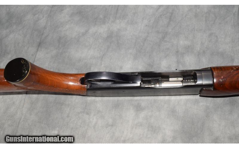 Description: An excellent example of the Remington 740, in a caliber that can take most everything. A lot of minor surface finish issues on the butt stock, metal is in great shape. SOLD Caliber Info: 30-06 Springfield. Chambers: 4 round semi-auto. Metal Condition: Very Good - no scratches, minor handling marks. Wood Condition: Good, a lot of minor scratches and dings. Bore Condition: Very good, clean with crisp rifling. Barrels: 22 inch blued. Triggers: Single. Stock: Walnut with checkered pistol grip and sling studs. Stock Dimensions: 13.75 inch LOP, 42 inch overall. Fore End: Smooth with horizontal finger grooves. Butt Pad: Factory metal. Weight: 7 lbs 8 oz. Sights: Rear notched with step ladder, fixed front. Extras: One factory four round magazine. Item Location: Chesterfield, MI |