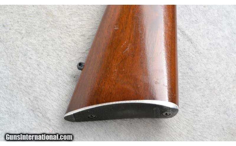 Description: This Remington Model 740 Woodsmaster is a right hand semi-auto rifle in .30-06 Sprg. Cal. It has a 22 inch barrel. A raised blade front sight and an adjustable notch middle sight. It is drilled and tapped for a scope mount. The butt stock is a smooth grip walnut pistol grip. The forearm is a smooth grip walnut with finger grooves. .30-06 Springfield SOLD Chambers: Detachable magazine. Metal Condition: Very Good. Has a little minor freckling. Wood Condition: Good. Some light handling marks. Bore Condition: Excellent. Barrels: 22 inch. Stock Dimensions: LOP 13 1/2 inches. Fore End: Smooth grip walnut with finger grooves. Butt Pad: Grooved aluminum plate. Weight: 7 Lb. 6 Oz. Sights: Raised blade front. Adjustable notch middle. Drilled and tapped. Item Location: Richfield, WI |