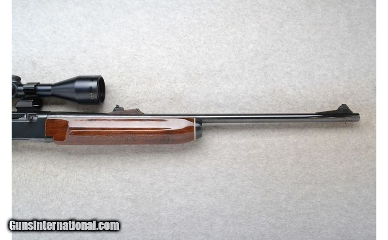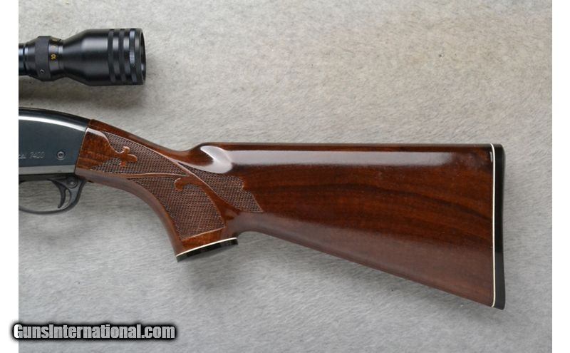 Description: This Remington Model 7400 is a right hand semi-auto rifle in .243 Win. Cal. It has a 22 inch barrel. A blade front sight and an adjustable notch rear sight. It is outfitted with a Simmons Scope on a see through mount. The butt stock is a checkered grip walnut pistol grip with a black cap. The forearm is a checkered grip walnut with finger grooves and a black cap. .243 Winchester SOLD Chambers: Detachable magazine. Metal Condition: Excellent. Some very minor blemishes left side of the receiver. Wood Condition: Excellent. Some very minor handling marks. Bore Condition: Excellent.Excellent. Barrels: 22 inch. Stock Dimensions: LOP 13 3/8 inches. Fore End: Checkered grip walnut with finger grooves and a black cap. Butt Pad: Checkered black plate. Weight: 8 lb. 14 oz. Sights: Raised blade front. Adjustable notch middle. Simmons 3-10x44 Scope. Item Location: Richfield, WI |
