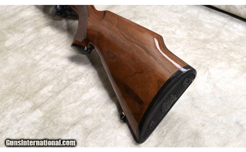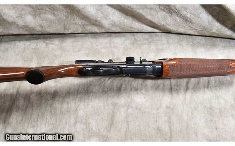 Description: Nice -looking auto-loading hunting rifle featuring wood with good figure, elevated comb, and includes both 'iron' and optical sights. .243 Winchester SOLD Chambers: 4 Metal Condition: Excellent. Wood Condition: Excellent. Bore Condition: Shiny adn bright with good rifling. Barrels: 22-inch Triggers: Factory trigger. Stock Dimensions: 13-1/2 inch Fore End: Well-matched checkered walnut. Butt Pad: Black plate. Weight: 9 lb Sights: White bead and ramp type notch open sights. Set up for scope and outfitted with a Luepold VX-3 2.5-8x36MM scope. Item Location: Rogers |