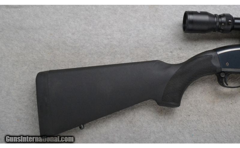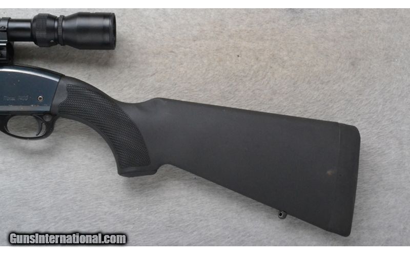 Description: This Remington Model 7400 is a right hand semi-auto rifle in .270 Win. Cal. It has a 22 inch barrel. A raised blade front sight and an adjustable notch middle sight. It is outfitted with a Tasco 3-9 Scope. The butt stock is a textured grip black polymer pistol grip. The forearm is a textured grip black polymer with finger grooves. .270 Winchester SOLD Chambers: Detachable magazine. Metal Condition: Barrel is excellent. Receiver has some light freckling and blue wear spots. Bore Condition: Excellent. Barrels: 22 inch. Stock Dimensions: 13 7/8 inches. Fore End: Textured grip black polymer with finger grooves. Butt Pad: Black rubber recoil pad. Weight: 8 lb. 2 oz. Sights: Raised blade front. Adjustable notch middle. Tasco 3-9 Scope. Item Location: Richfield, WI |