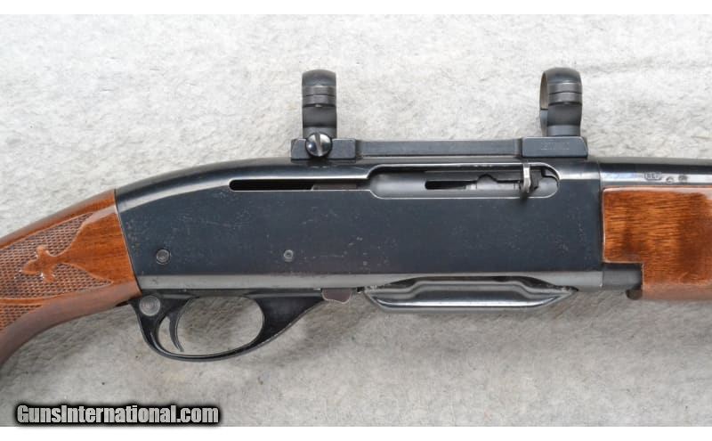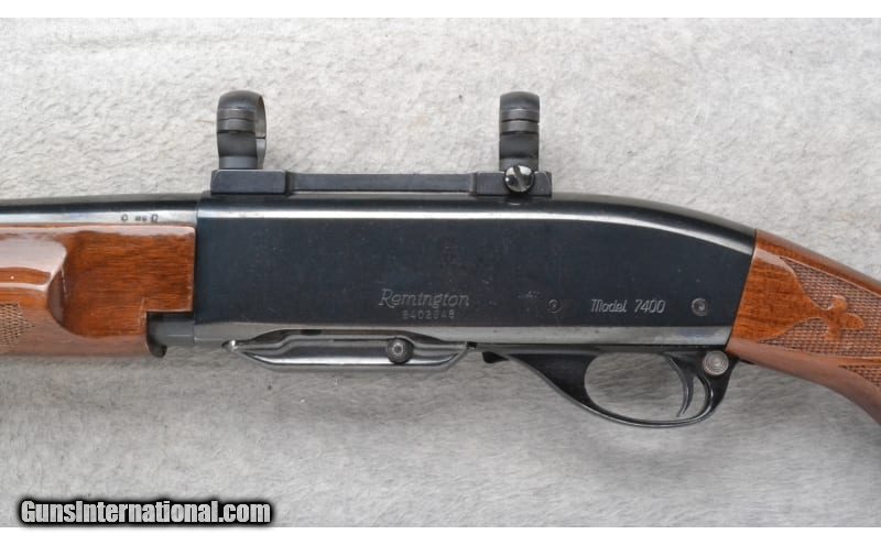 Description: This Remington Model 7400 is a right hand semi-auto rifle in .270 Win. Cal. It has a 22 inch barrel. It is outfitted with scope rings and comes with the original front and middle iron sights. The butt stock is a checkered grip walnut pistol grip with a black cap. The forearm is a checkered grip walnut with a black tip. .270 Winchester SOLD Chambers: Detachable magazine. Metal Condition: Good. Receiver has some surface freckling. Minor handling marks. Wood Condition: Good. Light handling marks. A little wood swell at the butt plate. Bore Condition: Very Good. Barrels: 22 inch. Stock Dimensions: LOP 13 1/2 inches. Fore End: Checkered grip walnut with finger grooves and a black cap. Butt Pad: Remington checkered black plate. Weight: 8 Lb. 0 Oz. Sights: Scope rings attached. Original front and middle iron sights are included. Item Location: Richfield, WI |