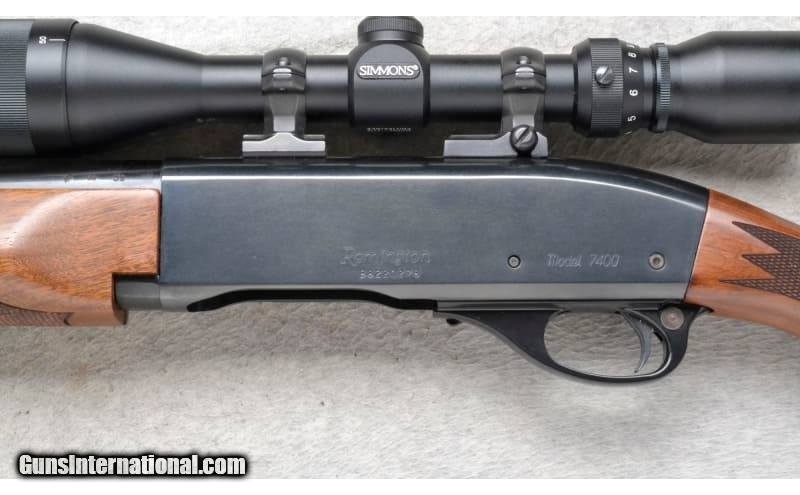 Description: This Remington Model 7400 is a right hand semi-auto rifle in .270 Win. Cal. It has a 22 inch barrel, A raised blade front sight and an adjustable notch middle sight. It is outfitted with a Simmons 4-12x40 Scope. The butt stock is a checkered grip walnut pistol grip with a black cap. The forearm is a checkered grip walnut. .270 Winchester SOLD Chambers: Detachable Magazine. Metal Condition: Excellent. Wood Condition: Excellent. Bore Condition: Excellent. Barrels: 22 inch. Stock Dimensions: 13 1/4 inches. Fore End: Checkered grip walnut. Butt Pad: Remington checkered black plate. Weight: 8 lb. 14 oz. Sights: Raised blade front. Adjustable notch middle. Simmons Prohunter 4-12x40 AO Scope. Item Location: Richfield, WI |