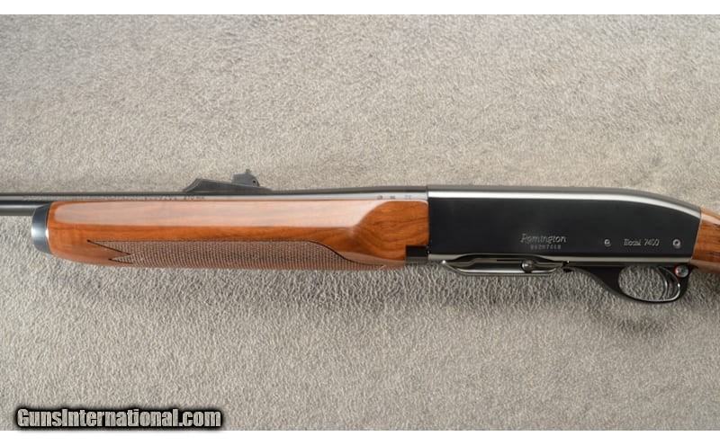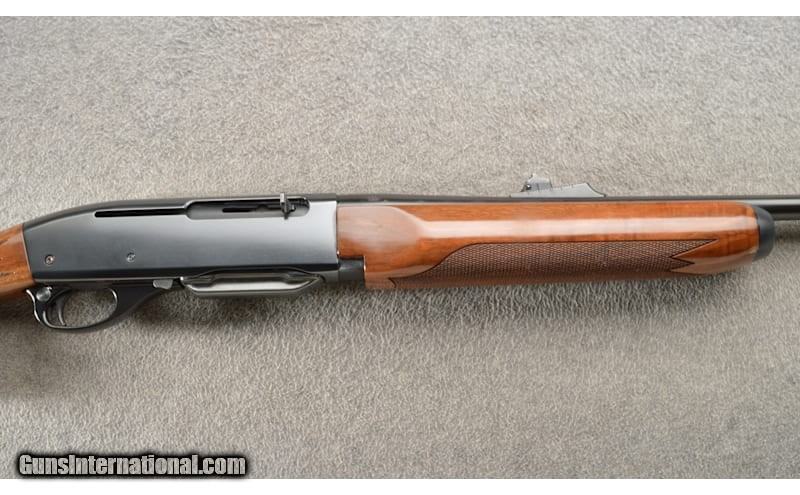 Description: Remington Model 7400 is a semi-auto rifle in 270 Winchester with a 22.25" barrel. The left side of the barrel is marked with the warning line with "**** REMINGTON ARMS COMPANY INC. ILION, NY U.S.A. ****", 270 WIN", and "WO" date code. The left side of the receiver is marked "Remington / B8207468" and "Model 7400". The right side of the barrel is marked with "REP". The front sight is a beaded blade dovetailed to a serrated ramp and screwed to the barrel. The rear sight is a fully adjustable small U notch sight on a ramped riser that is screwed to the barrel. The top of the receiver has been drilled, tapped and plugged. The stocks are a checkered two-piece gloss walnut with a fluted Monte Carlo comb, capped semi-pistol grip, and a two piece Remington butt plate. The forend is a checkered full finger shelf forend. This gun appears in unused condition and comes with one magazine. .270 Winchester SOLD Chambers: Semi auto. Metal Condition: Like new. Wood Condition: Like new. Bore Condition: Bight bore with deep lands and grooves. Barrels: 22.25" barrel. Triggers: Single trigger. Stock Dimensions: LOP 13.5". Fore End: Checkered with finger shelf. Butt Pad: Hard rubber. Sights: Adjustable. Item Location: Owatonna, MN |