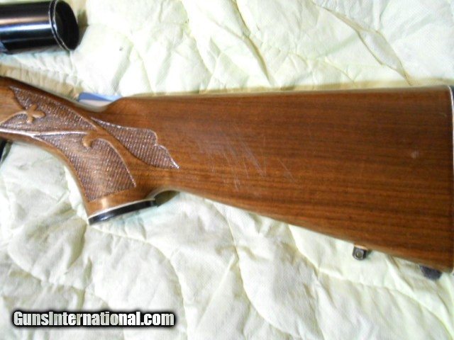 Description: Very nice Remington 7400. Date code shows Jan 1982 manufacture date. Barrel stamped 7mm Express making it a little rarees with 4 round clip and a Bushnell Banner 3-9 scope. The rear sight has been removed.There is slight wear on the blueing on the muzzel and carry wear, but all in all for the age I would say it is excellent. Bore is good and rifeling are sharp. Payment via USPS Money order or certified funds Insured shipping to CONUS, except Ca.) $45 Questions? Please call with questions or to order (405) 494-1318 SOLD Rifle Caliber: .280 Remington Manufacturer: REMINGTON Model: 7400 Serial Number: 8009279 Condition: VERY GOOD Metal Condition: VERY GOOD Wood Condition: VERY GOOD Bore Condition: EXCELLENT Stock: WOOD LOP: 13.5 |