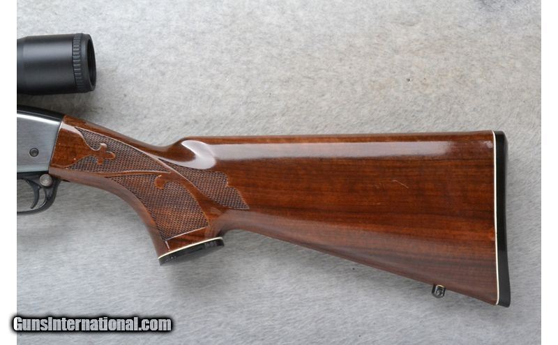 Description: This Remington Model 7400 is a right hand semi-auto rifle in .30-06 Sprg. Cal. It has a 22 inch barrel. A blade front sight and an adjustable notch middle sight. It is outfitted with a Nikon Prostaff 5 Scope. The butt stock is a checkered grip walnut pistol grip with a black cap. The forearm is a checkered grip walnut with a black cap. .30-06 Springfield SOLD Chambers: Detachable magazine. Metal Condition: Excellent. Wood Condition: Good. Some minor handling marks and oil swell at the butt plate. Bore Condition: Excellent. Barrels: 22 inch. Stock Dimensions: LOP 13 1/2 inches. Fore End: Checkered grip walnut with a black cap. Butt Pad: Checkered black plate. Weight: 8 lb. 12 oz. Sights: Raised blade front. Adjustable notch middle. Nikon Prostaff 5 2.5x10 Scope. Item Location: Richfield, WI |
