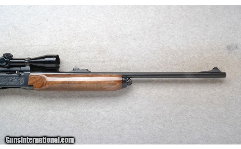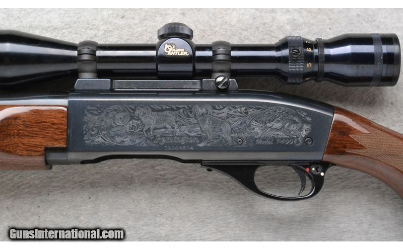 Description: This Remington Model 7400 is a right hand semi-auto rifle in .30-06 Sprg. Cal. It has a 22 inch barrel. A blade front sight and an adjustable notch middle sight. It is outfitted with a 3-9x40 Scope. The butt stock is a checkered grip walnut Monte Carlo pistol grip. The forearm is a checkered grip walnut. The receiver is very nicely engraved with elk and ram in an outdoor scene. .30-06 Springfield SOLD Chambers: Detachable magazine. Metal Condition: Excellent. Wood Condition: Good. Has handling marks and scratches. Bore Condition: Excellent. Barrels: 22 inch. Stock Dimensions: LOP 13 3/8 inches. Fore End: Checkered grip walnut. Butt Pad: Remington black plate. Weight: 8 lb. 12 oz. Sights: Raised blade front. Adjustable notch middle. Golden Antler 3-9x40 Scope. Item Location: Richfield, WI |
