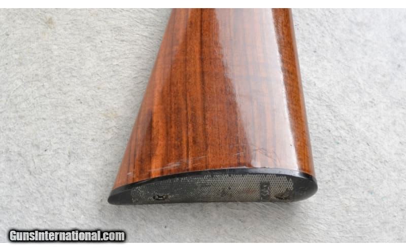 Description: This Remington Model 7400 is a right hand semi-auto rifle in .30-06 Sprg. Cal. It has a 22 inch barrel. A raised blade front sight and an adjustable notch middle sight. It is drilled and tapped. The butt stock is a checkered grip walnut pistol grip with a black cap. The forearm is a checkered grip walnut with finger grooves and a black tip. .30-06 Springfield SOLD Chambers: Detachable Magazine. Metal Condition: Fair. Has some light freckling and handling marks. Wood Condition: Good. Has some handling marks. Bore Condition: Excellent. Barrels: 22 inch. Stock Dimensions: LOP 13 1/4 inches. Fore End: Checkered grip walnut with finger grooves and a black tip. Butt Pad: Remington checkered black plate. Weight: 8 lb. 2 oz. Sights: Raised blade front. Adjustable notch middle. Drilled and tapped. Item Location: Richfield, WI |