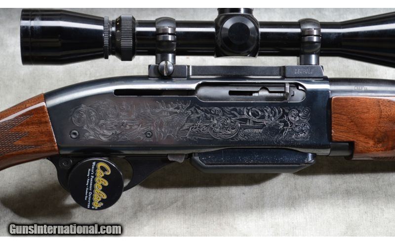Description: Features include elevated comb, engraved games scenes on the flats, Leupold scope, and overall good condition. .30-06 Springfield SOLD Chambers: 4-Round detachable magazine Metal Condition: Very good. There is some pitting on the flats above the magazine and on the magazine where the balance point is. Wood Condition: Very good. Minor handling marks. Bore Condition: Shiny and bright with good rifling. Barrels: 22 inches. Triggers: Factory trigger. Stock Dimensions: 13-3/8 inch LOP. Fore End: Matching walnut. Butt Pad: Black plastic. Weight: 8 lb. - 12 oz. Sights: Bead front sight. rear sight removed for scope. Drilled and tapped for your choice of scope. Out fitted with Leupold VX-1 3-9x40mm. Item Location: Rogers |