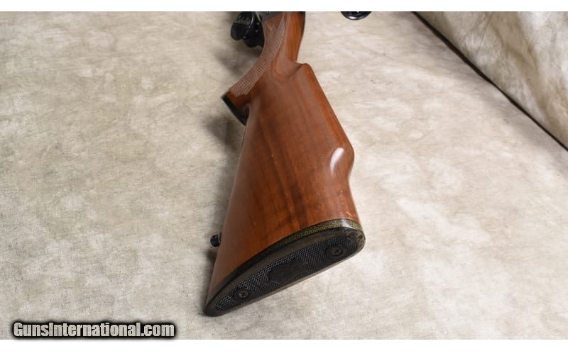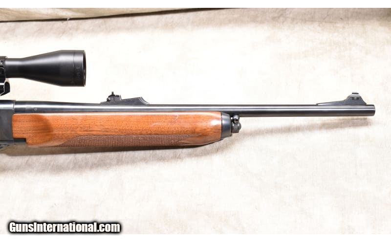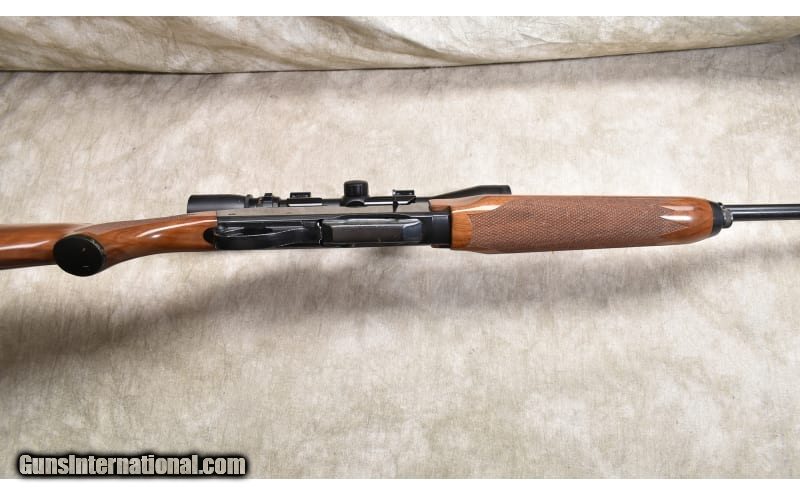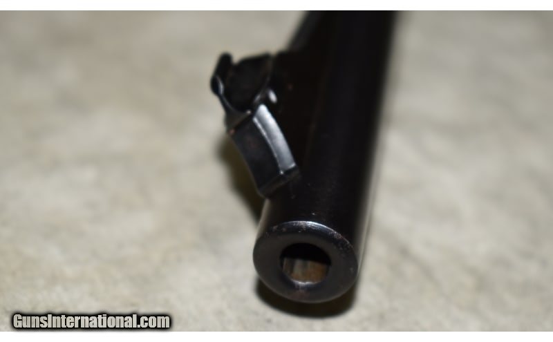 Description: Designed specifically for hunting in the woods, this carbine features an overall length of 38-3/4 inches, nice Monte Carlo pattern walnut stock, beavertail fore end, and contrasting grip/tip caps. There are signs of this being someone's favored woods runner with some handling marks and some shallow rust spots. The barrel code "DK" would place manufacture date in 1989 or so. .30-06 Springfield SOLD Chambers: 4 rounds Metal Condition: Good to very good with some pitting on the barrel and receiver. Wood Condition: Good to very good. Handling marks. Bore Condition: Shiny and bright overall. Rifling good. A small amount of rust at the muzzle. Barrels: 18-1/2 inches Triggers: Factory trigger Stock Dimensions: 13-1/4 inch LOP. Fore End: Well-matched walnut beavertail. Butt Pad: Black plate. Weight: 8 LB - 10 OZ Sights: "White bead and ramp-type notch open sights, drilled and tapped for scope. Item Location: Rogers |