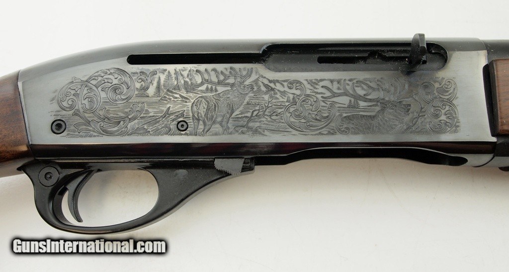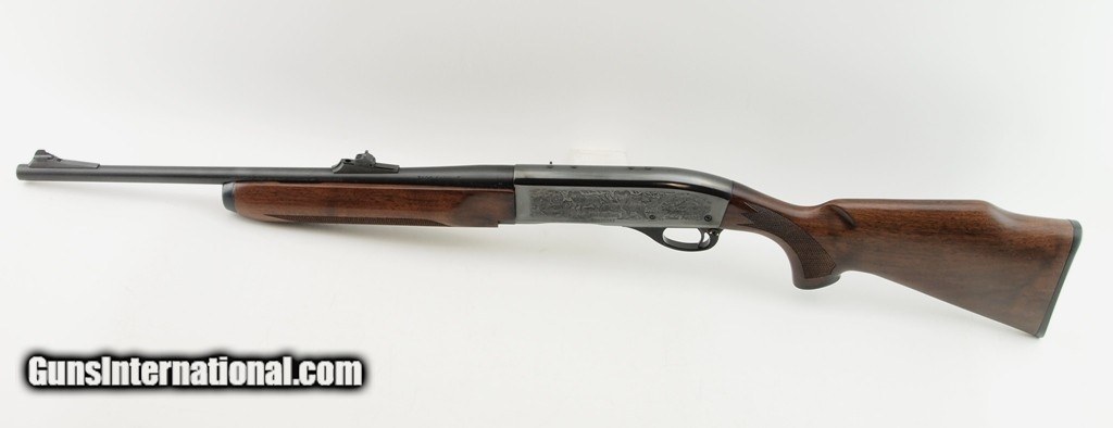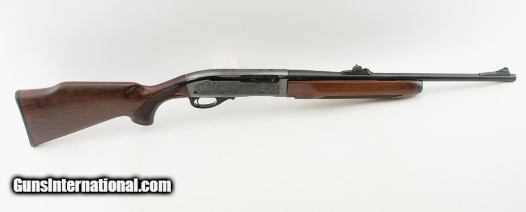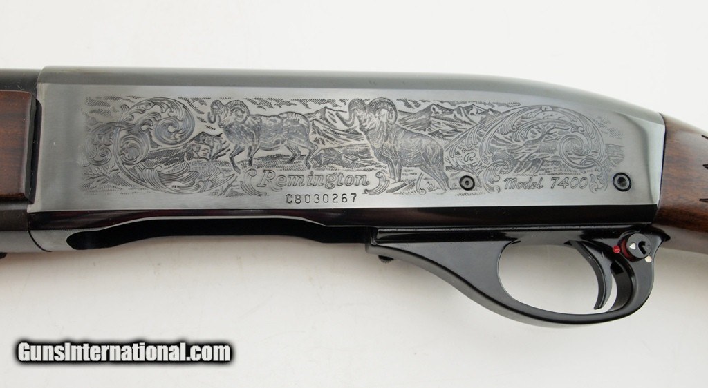 Description: Remington 7400 Carbine .30-06, 18" bbl, shiny bore, good rifling, blued finish, adjustable rear notch sight, white bead front sight, engraved receiver, drilled and tapped for your favorite optic, very nice checkered hardwood grip stock - forearm, light handling marks, LOP - 13 1/4", one 4 round magazine, and black butt plate. Add 3% for Credit Card Shipping $35.00 SOLD |