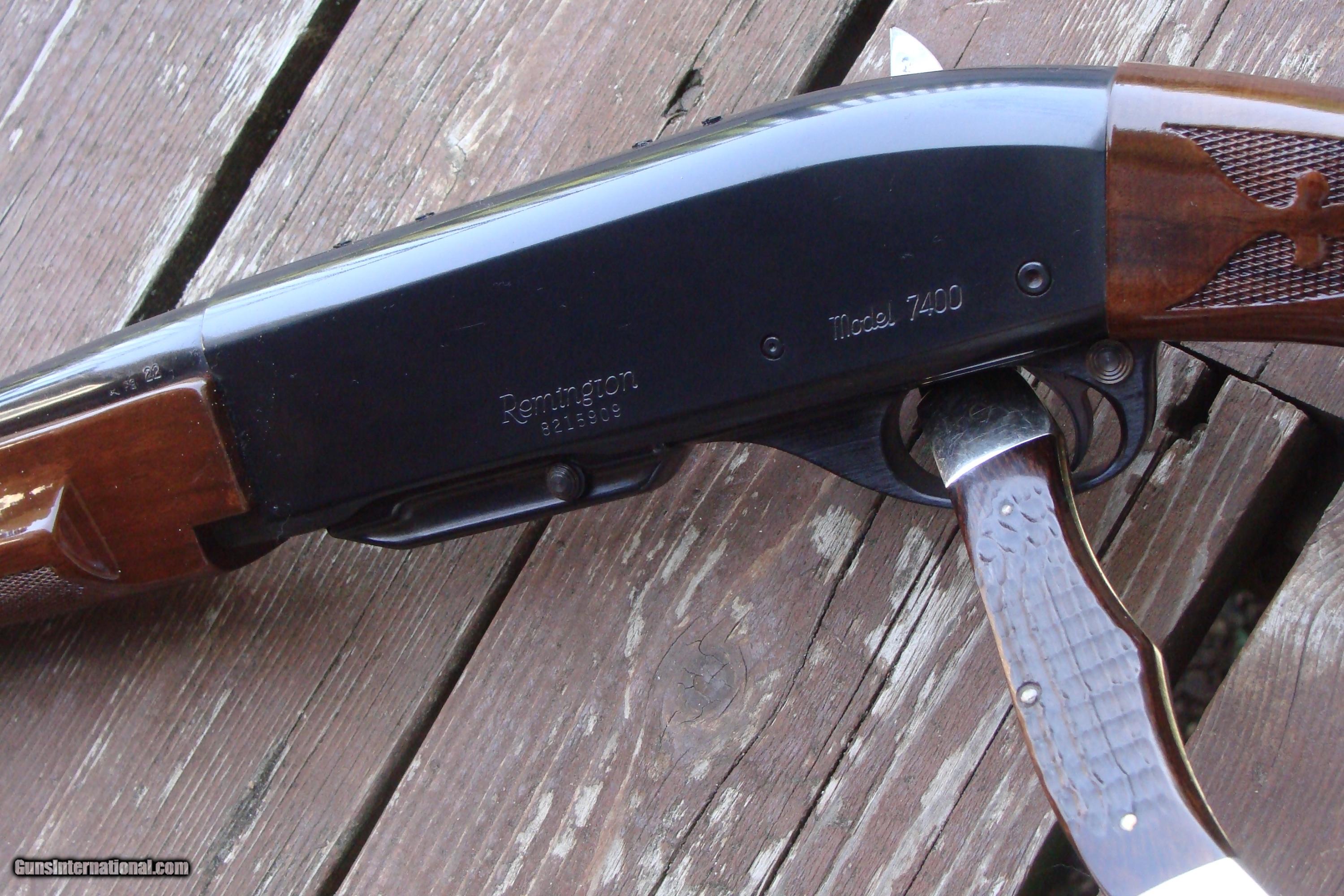 Description: VERY RARE, NOT ONLY IS THIS (DELUXE) MODEL 7400 IN A SOMEWHAT UNCOMMON AND VERY DESIRABLE CAL (280 ) BUT IT IS ADDITIONALLY MARKED 7MM EXP. REM (ACTUAL MARKING) IT IS IN BEAUTIFUL ALMOST UNUSED CONDITION EXCEPT FOR A SMALL INDENTATION RIGHT SIDE OF RECEIVER, NOT SCRATCHED AND OTHERWISE PRETTY MUCH UNMARKED THROUGHOUT AND APPROX AS NEW. IT HAS NEVER HAD A SCOPE MOUNTED, THE SIGHTS ARE CORRECT AND IN PLACE, NO NON FACTORY HOLES OR TAMPERING OF ANY KIND. BLACK PG CAP IS SHINY AND UNMARKED. A SKREW HOLDING THE FRONT SIGHT IN PLACE SHOWS A LITTLE LIGHT CRUD AS DOES THE FRONT SITE WHERE IT MEETS THE BARREL. SHIPPING IS $ 45.00 TO MOST LOCATIONS IN THE LOWER 48 STATES WHICH MOST OFTEN INCLUDES A RE USABLE SHIPPING CARTONS SPECIFCALLY MADE FOR RIFLES. WE ARE AN 01 FFL LOCATED IN NEW ENGLAND WHERE MANY OF THE FINE US MADE GUNS WERE MADE; WE DEAL IN QUALITY OLDER SPORTING GUNS PRIMARILY AND MAY HAVE WHAT YOU ARE LOOKING FOR. WE HAVE MANY FINE OLDER WINCHESTERS, REMINGTONS, MARLINS, FINE SHOTGUNS AND HANDGUNS, ESP OLDER COLTS, S&W'S AND HIGH STD'S SERIOUSLY INTERESTED PERSONS ARE ENCOURAGED TO EMAIL OR PHONE WITH QUESTONS OR TO REQUEST ADDITIONAL PICS. WE ARE AN FFL 01 AND HAVE OVER 1500 SALES ON ALL ON LINES SITES WITH AN A+ RATING ON ALL. SOLD |