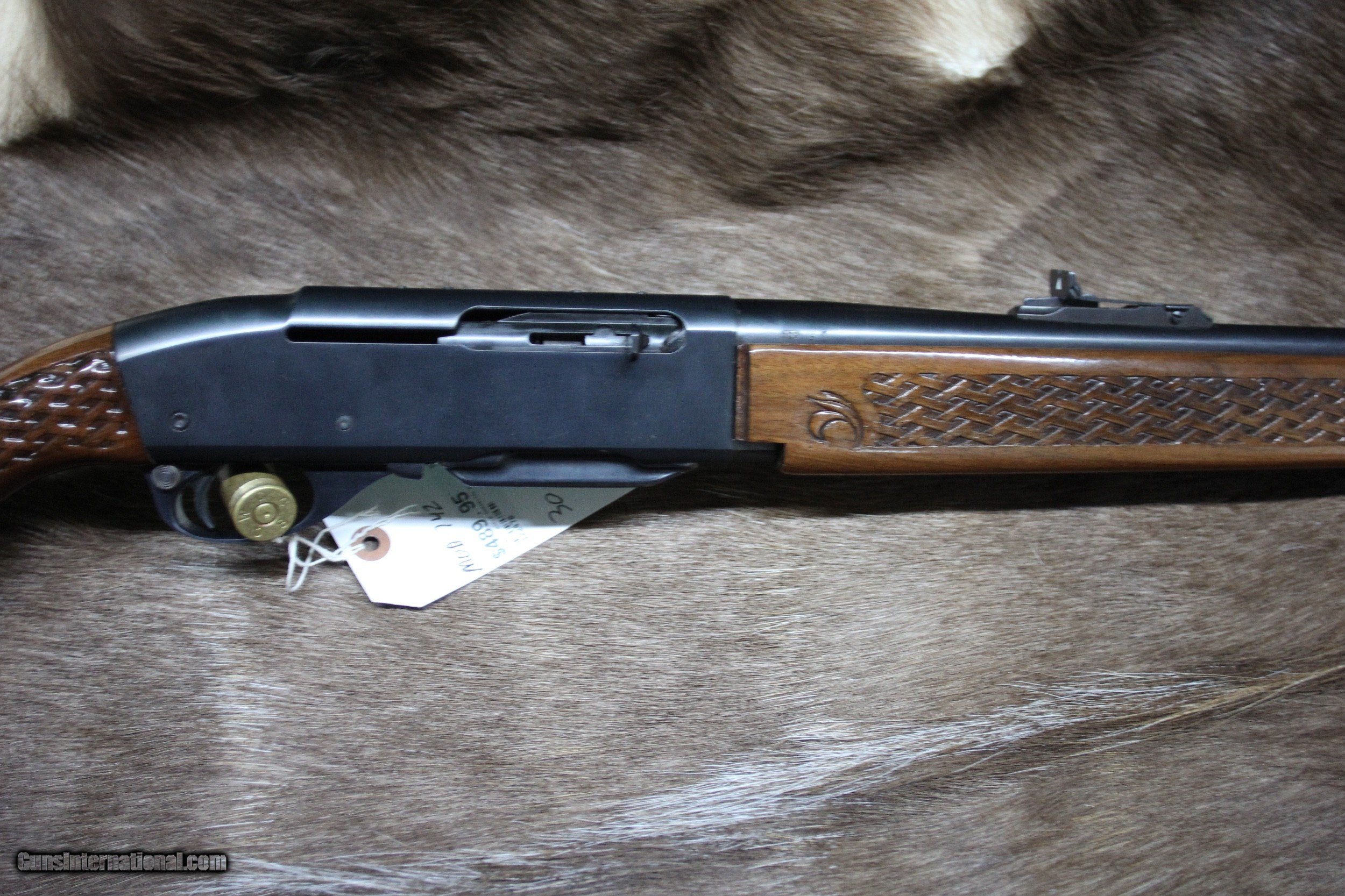 Description: Remington 742 is chambered in .30-06 and has a blued barreled action and wooden forend and stock. This rifle has open iron sight, a detachable magazine, cross bar safety, basketweave checkering, right handed cheek piece and a plastic but plate. These rifles are becoming harder to come by and would make a nice addition to a collection or a good option for semi-auto hunting. 90 day layaway is available for 20% down. 4% credit card fee. Be sure to check our other listings for more fine firearms. SOLD |